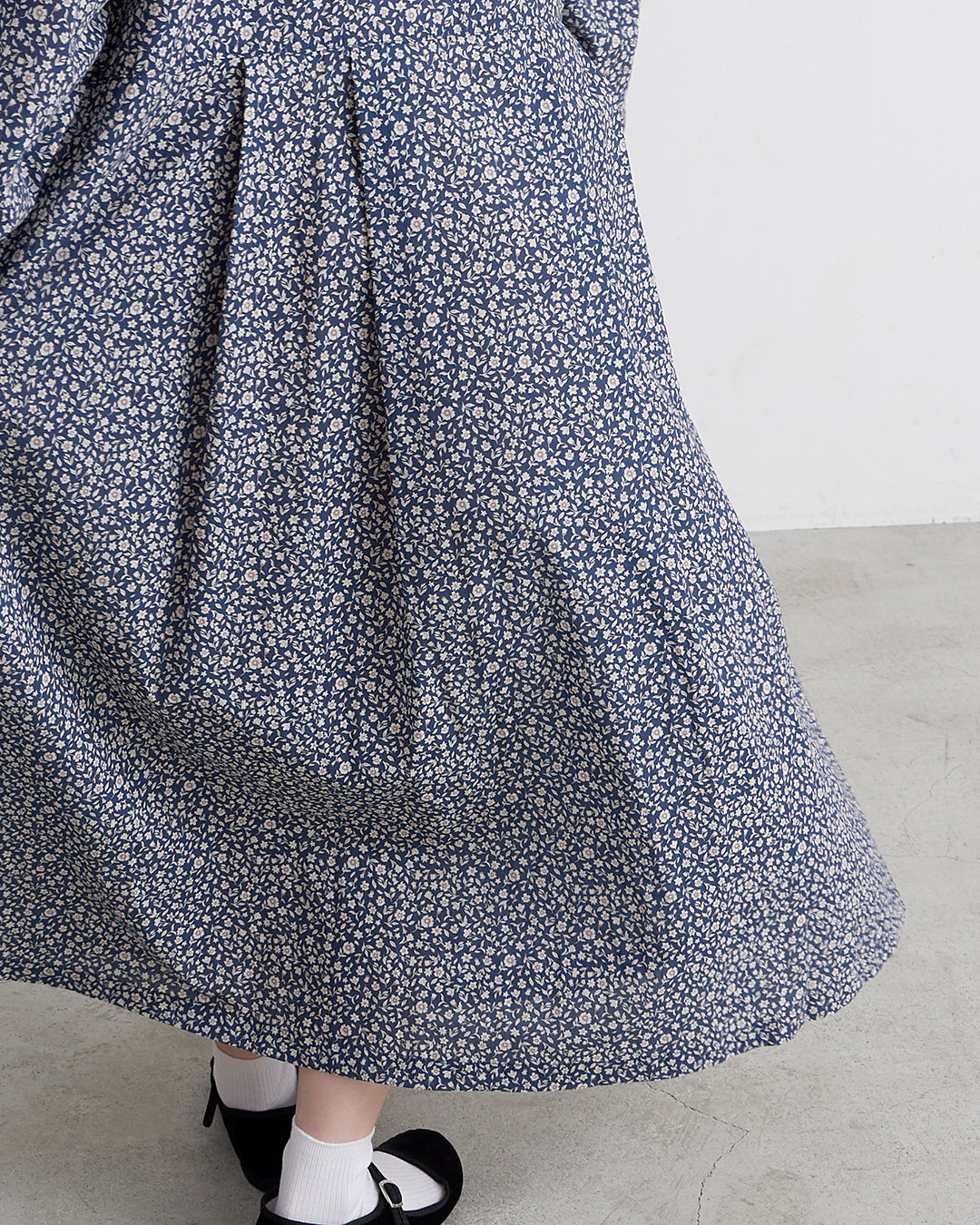 □ 毎年大人気!小花柄ワンピースの新柄が登場 □ オリジナルの小花柄をプリントした綿100%の60ローンを使用 □ 袖口は内側半分にゴムを入れ、ブラウジングが楽にできる □ 重ね着をしてロングシーズンの着用可能