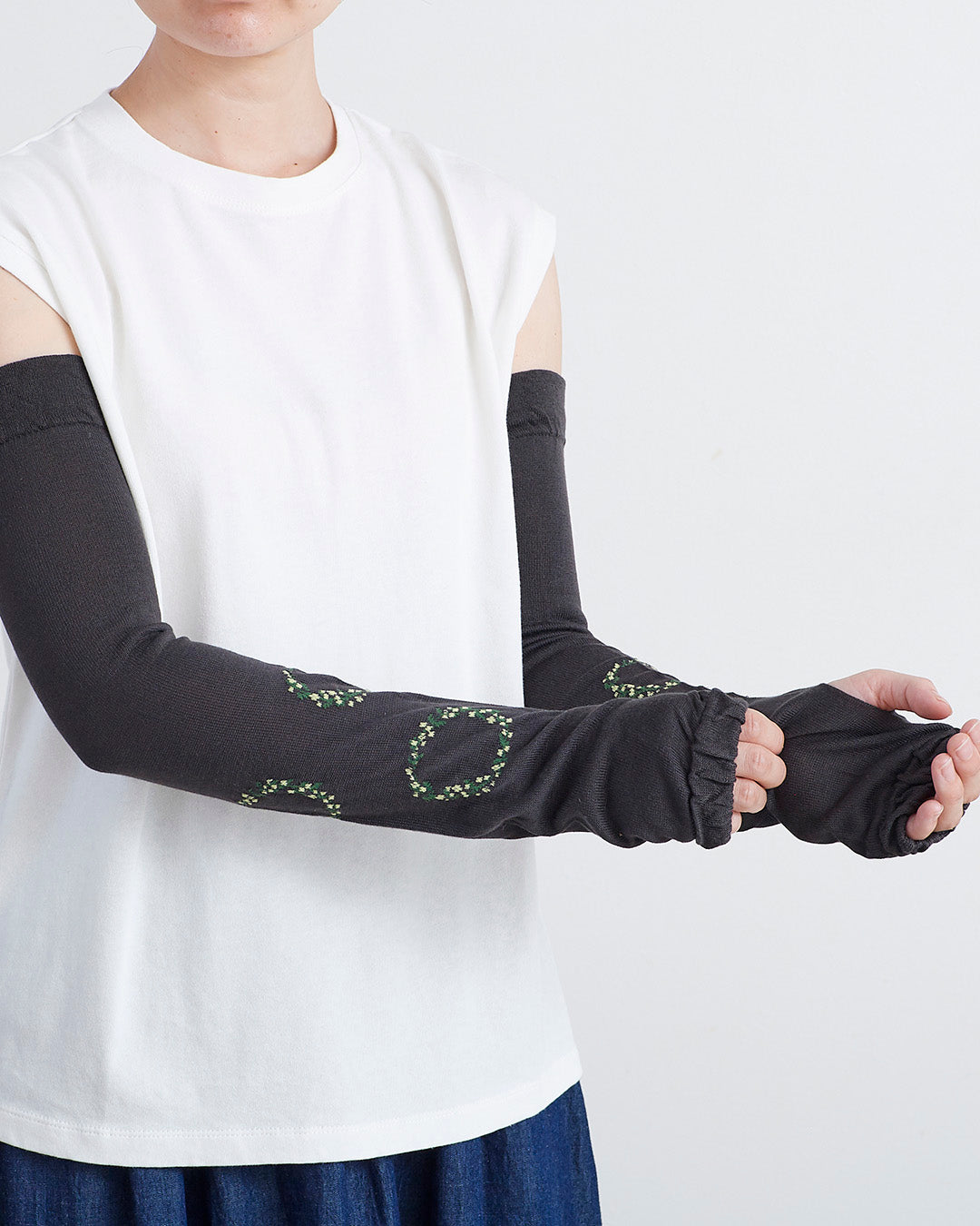 滑らかなレーヨンシルク素材のロング丈UVカットアームカバー。 親指を通す穴は無縫製でやさしい肌当たりです。 皮膚や環境への安全性に配慮された、天然有機系の抗菌防臭加工を施しています。 ※UVカット率は色により異なります。 BLACK・CHARCOAL:UVCUT90%/LIGHT GRAY:UVCUT75%