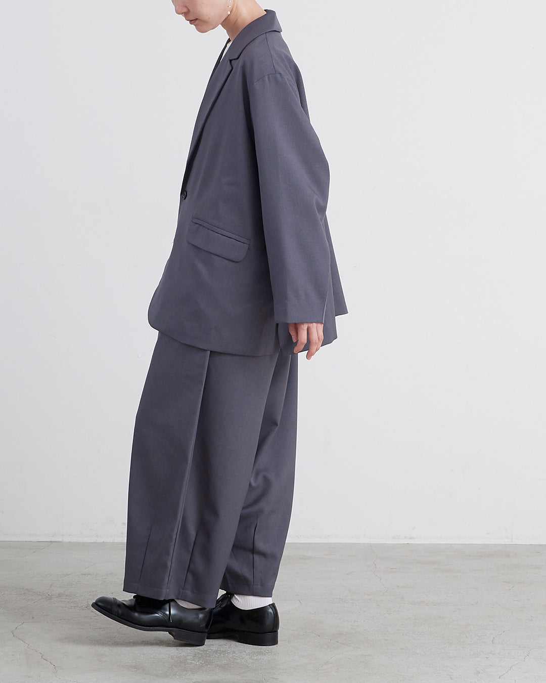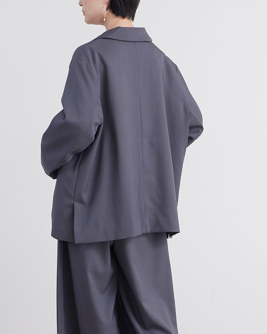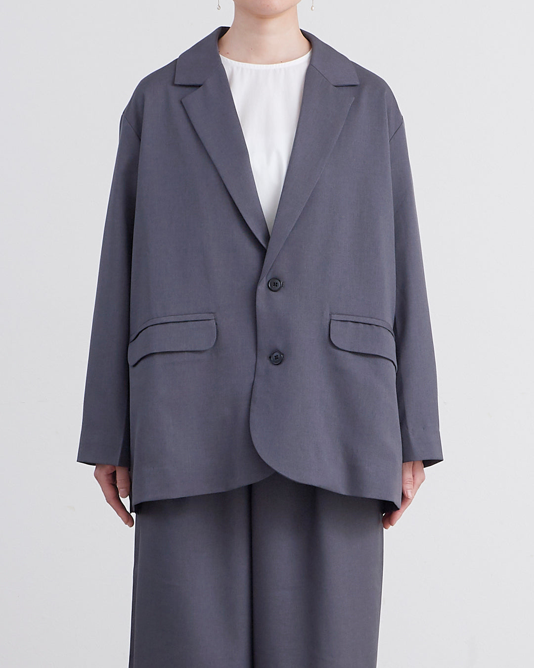 ■ ピリングが起きにくくシワになりにくいイージーケア素材 ■ やや薄手のツイルで膨らみのある上品でウールライクな生地 ■ ボックスシルエットでゆったりしたサイズ感のテーラードジャケット ■ セットアップでの着用はもちろん、ワンピースの羽織として持っていても様になるデザイン
