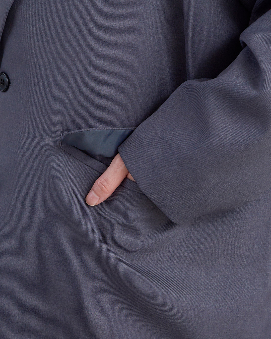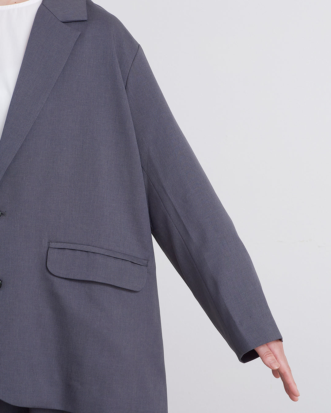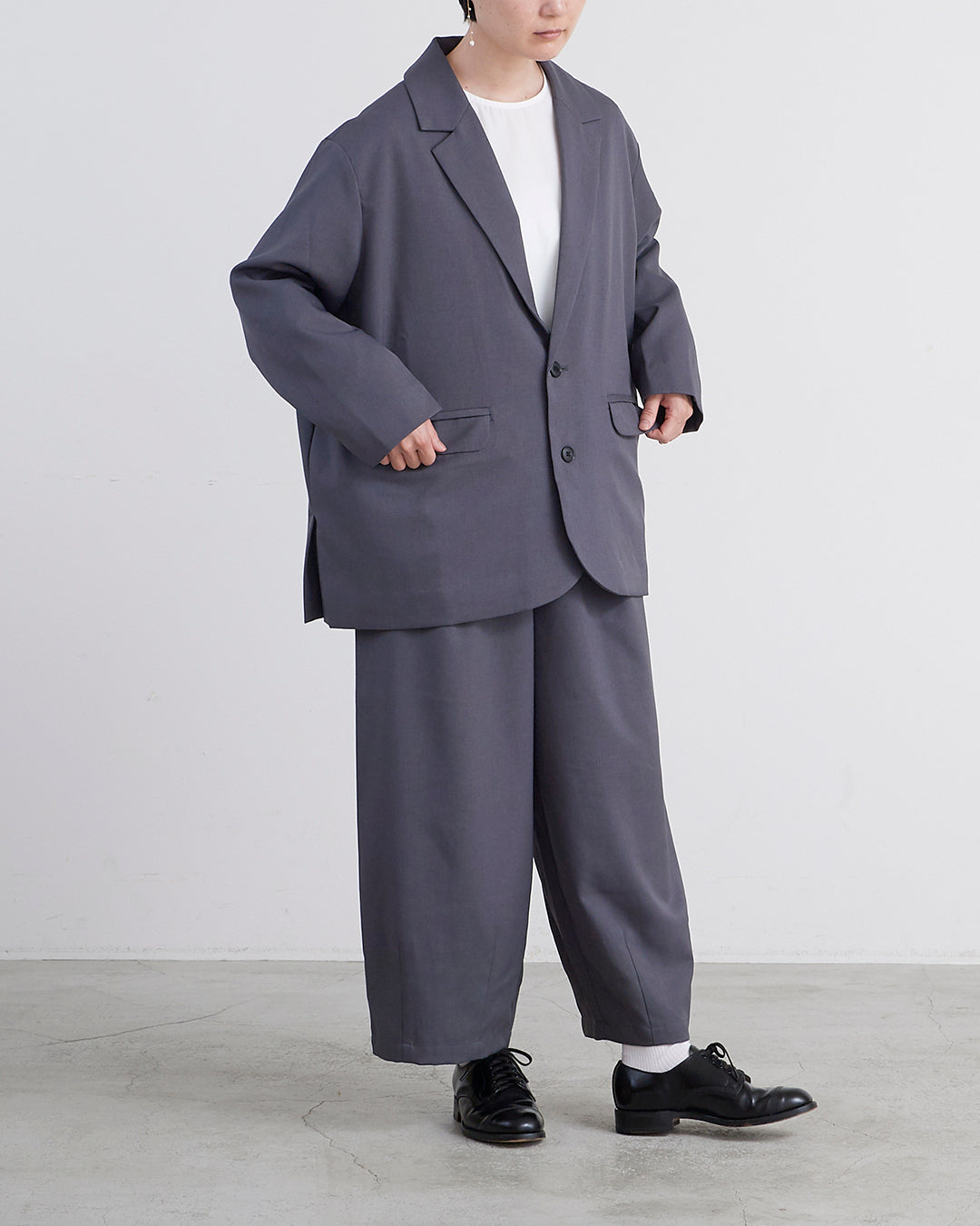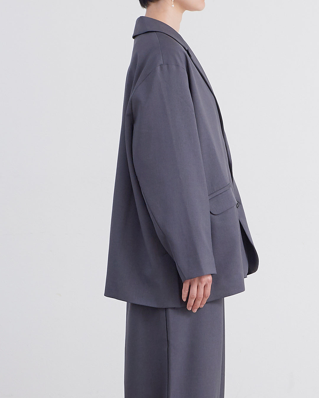 ■ ピリングが起きにくくシワになりにくいイージーケア素材 ■ やや薄手のツイルで膨らみのある上品でウールライクな生地 ■ ボックスシルエットでゆったりしたサイズ感のテーラードジャケット ■ セットアップでの着用はもちろん、ワンピースの羽織として持っていても様になるデザイン