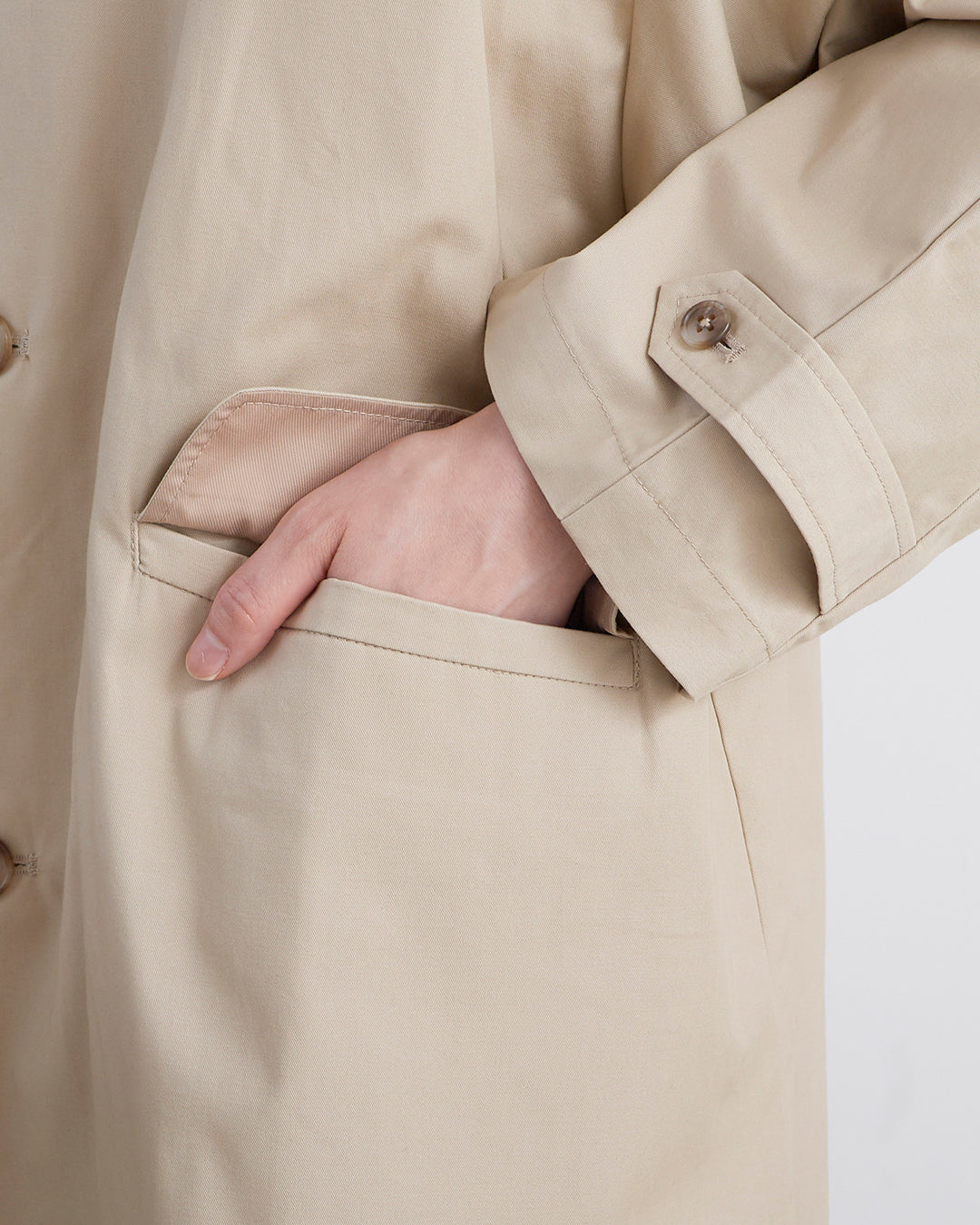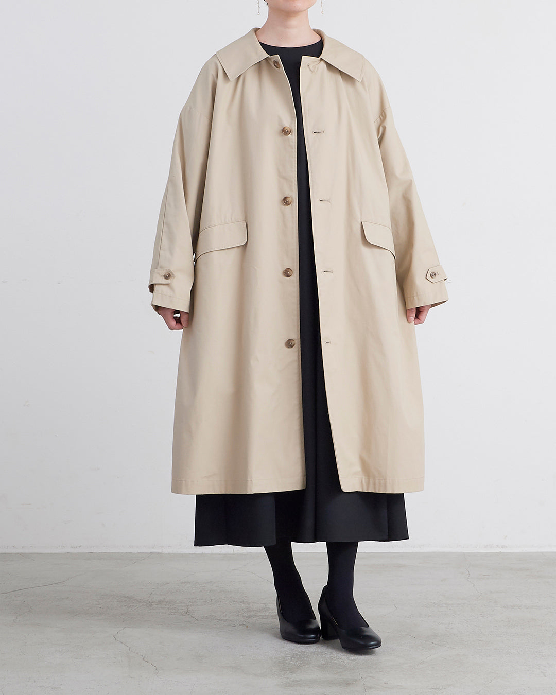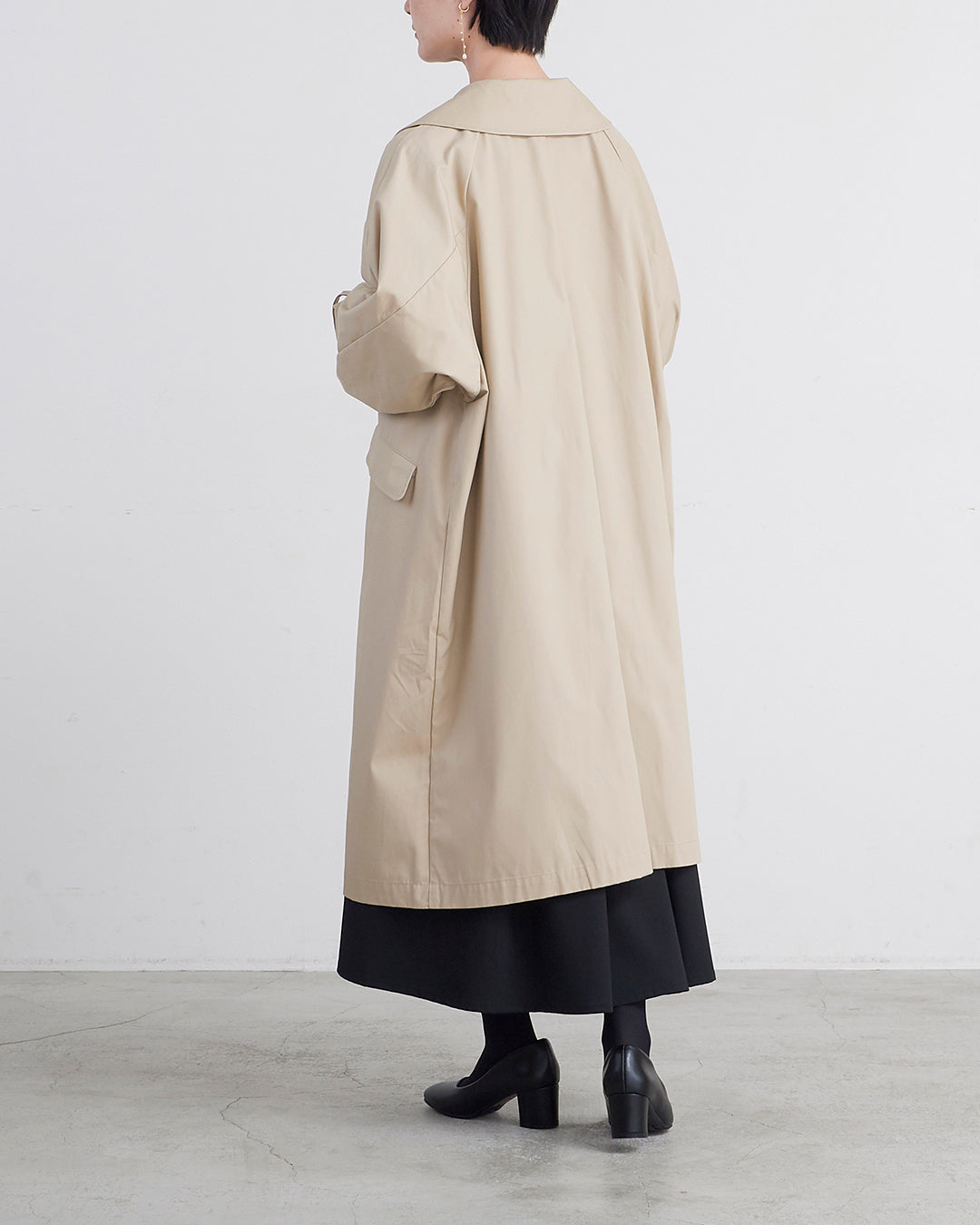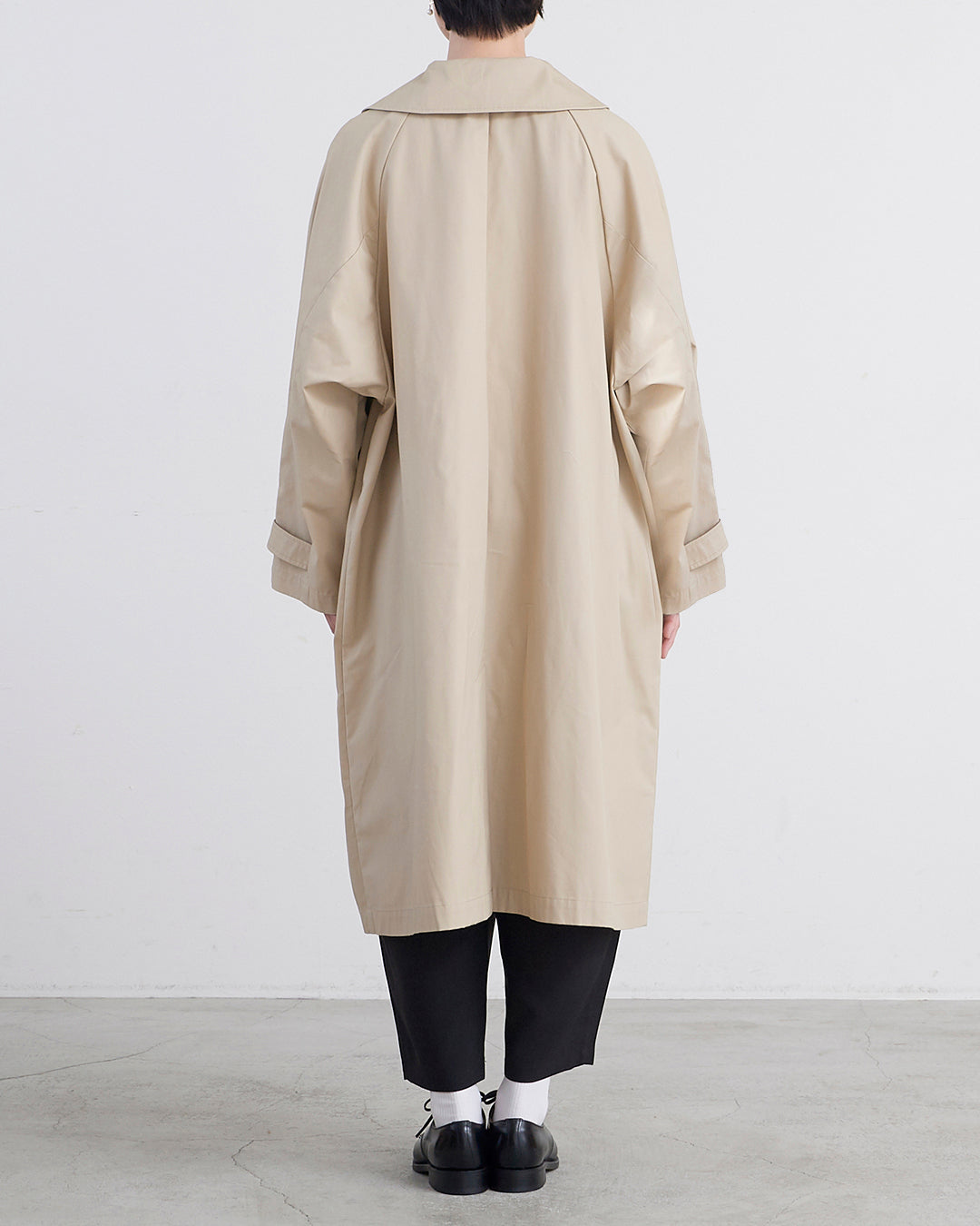 ■ 春・秋に程良い厚さで軽さと上品な光沢感が特徴の高密度ツイル生地 ■ 裏地無しのビッグシルエットコート ■ ジャケット着用時に肩やアームホールもストレスなく着用可能 ■ ラフに羽織れるゆったりとしたサイジングの裏地無しコート ■ 大きめのフラットカラーがポイント ■ 2枚袖やフラップ付きのポケット、アームベルトできちんと感にこだわった作り ■ オンオフ共に着回しの効くアイテム