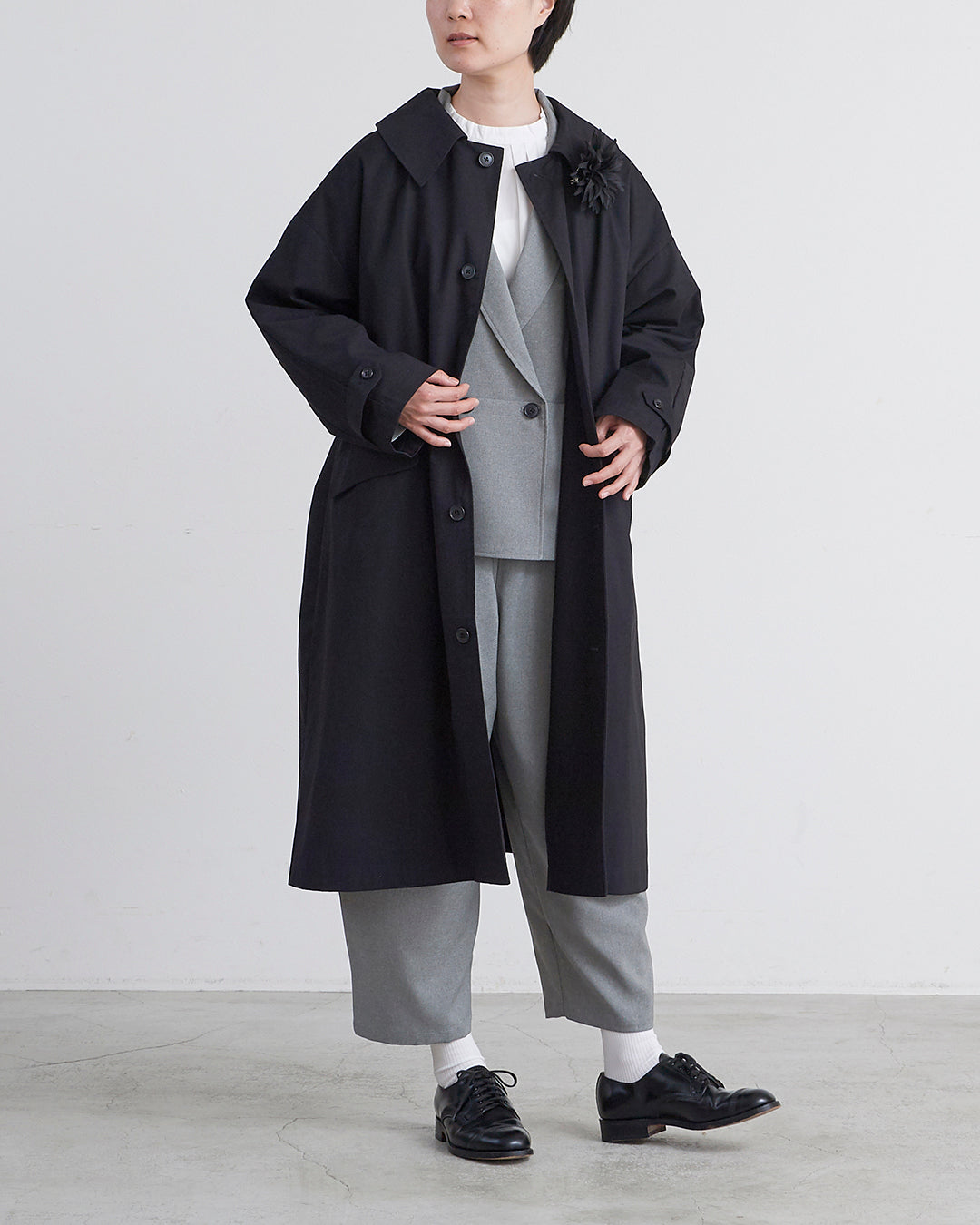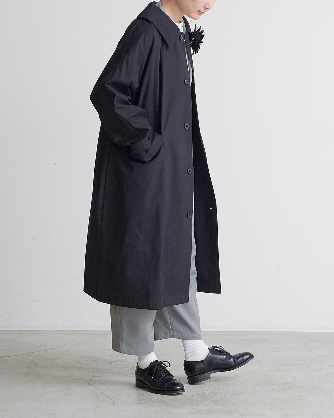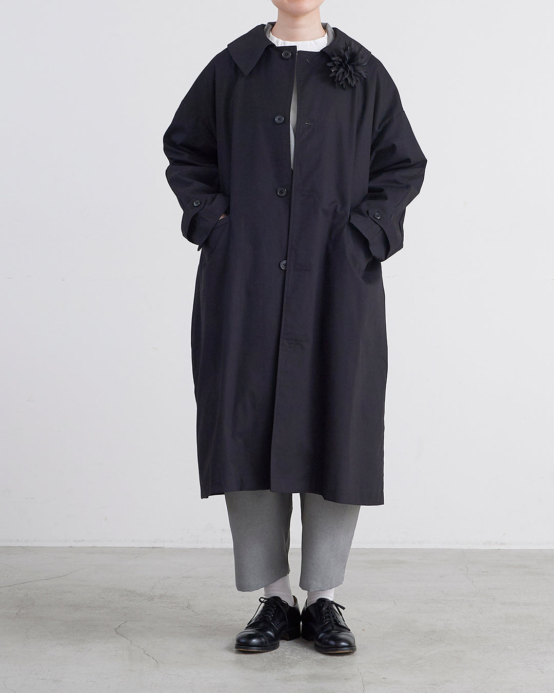 [un cinq アンサンク] #26-16 High Count Twill Widecollar Coat ハイ カウント ツイル ワイドカラー コート - U26-16 -