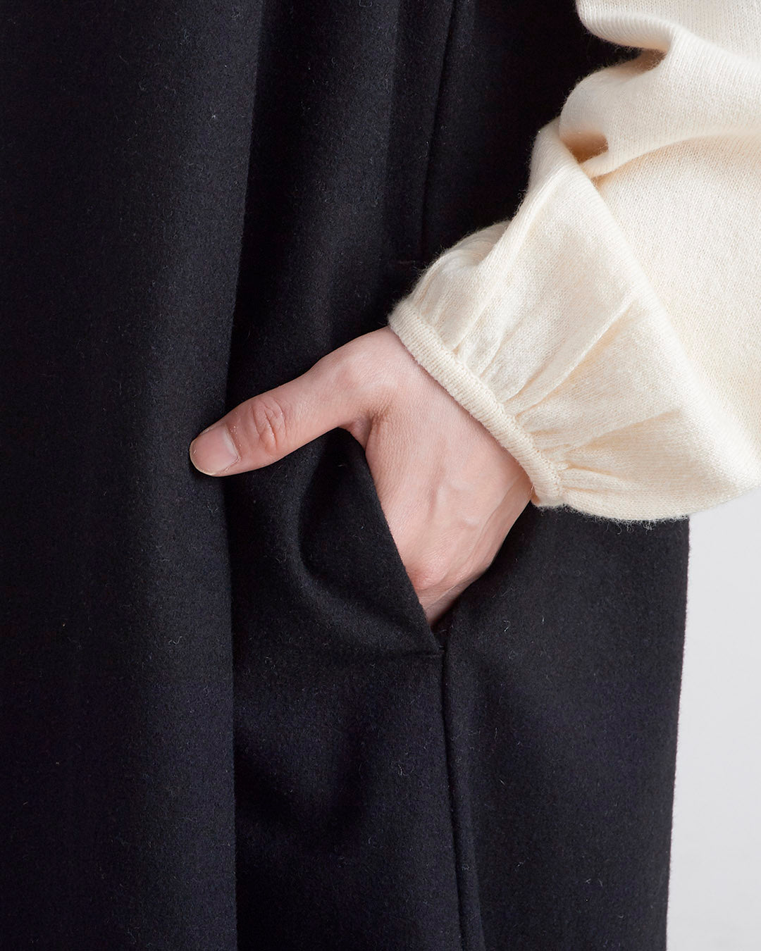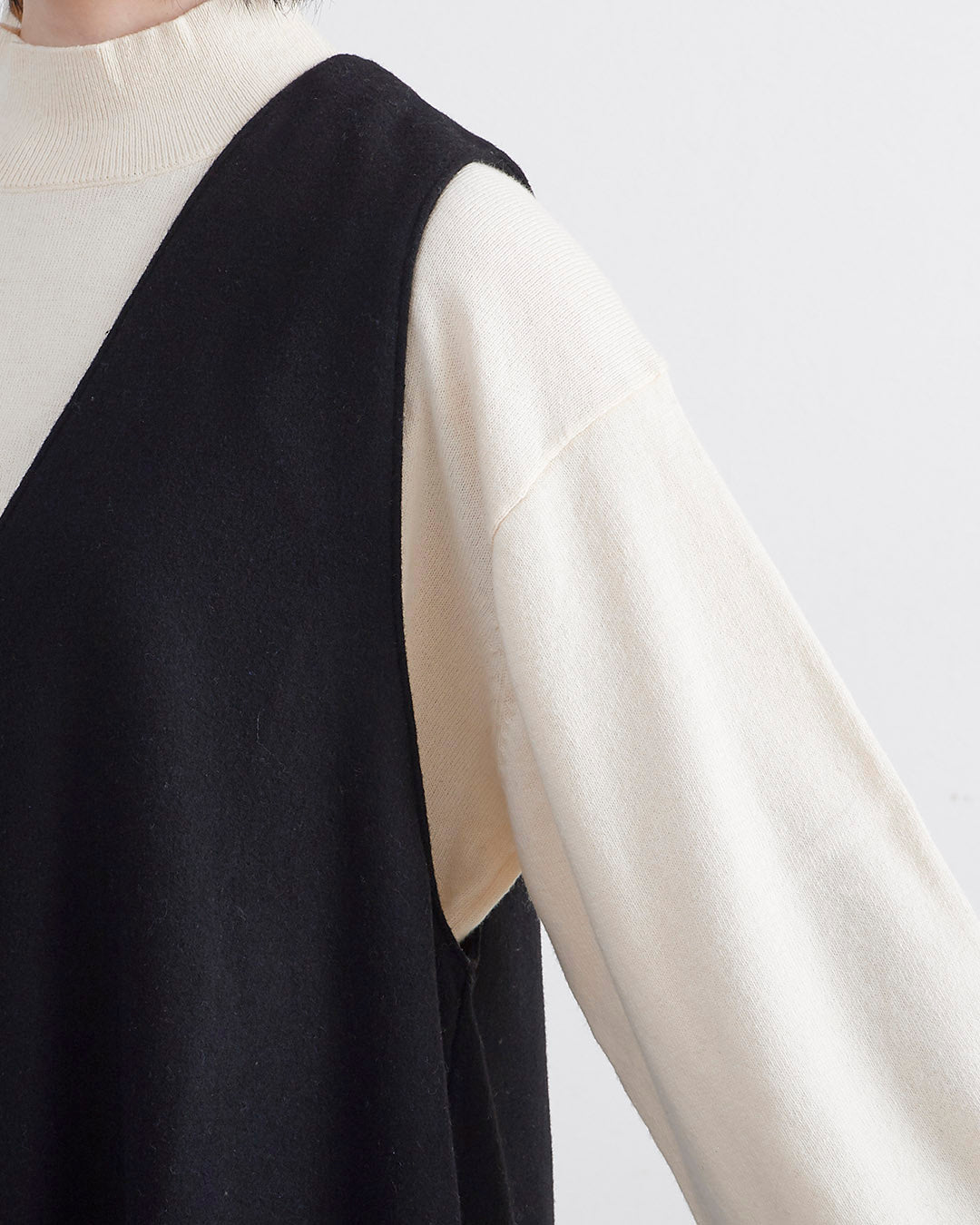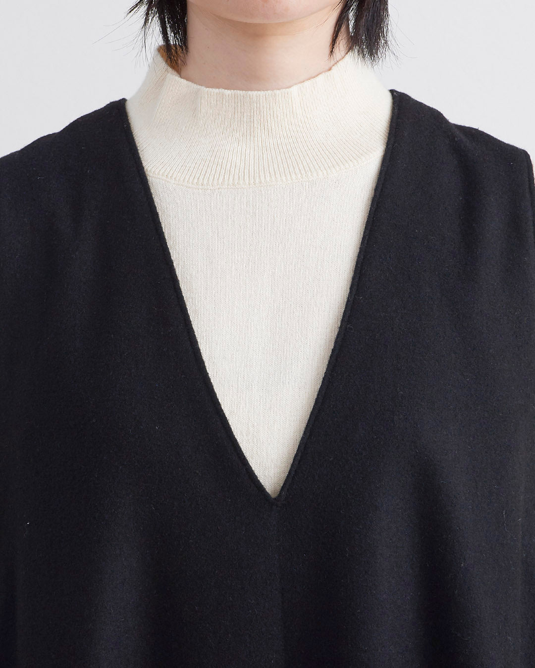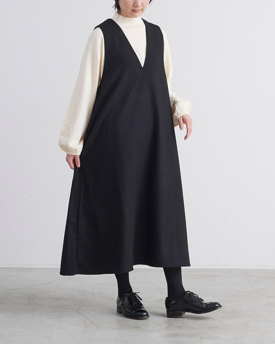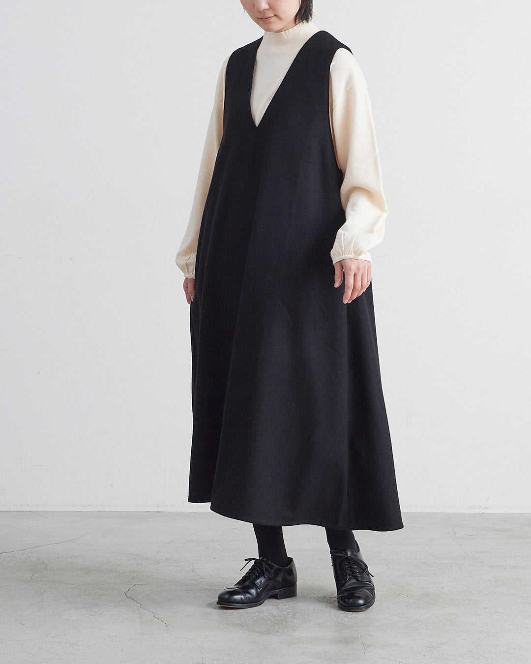 □人気のAラインジャンパースカートのリピート  □暖かいポリエステルウールの生地を使用  □きれいなVネックとAラインシルエットできちんと感を出せる  □すとんと落ち感があるので立ち姿もきれい  □裏地付き
