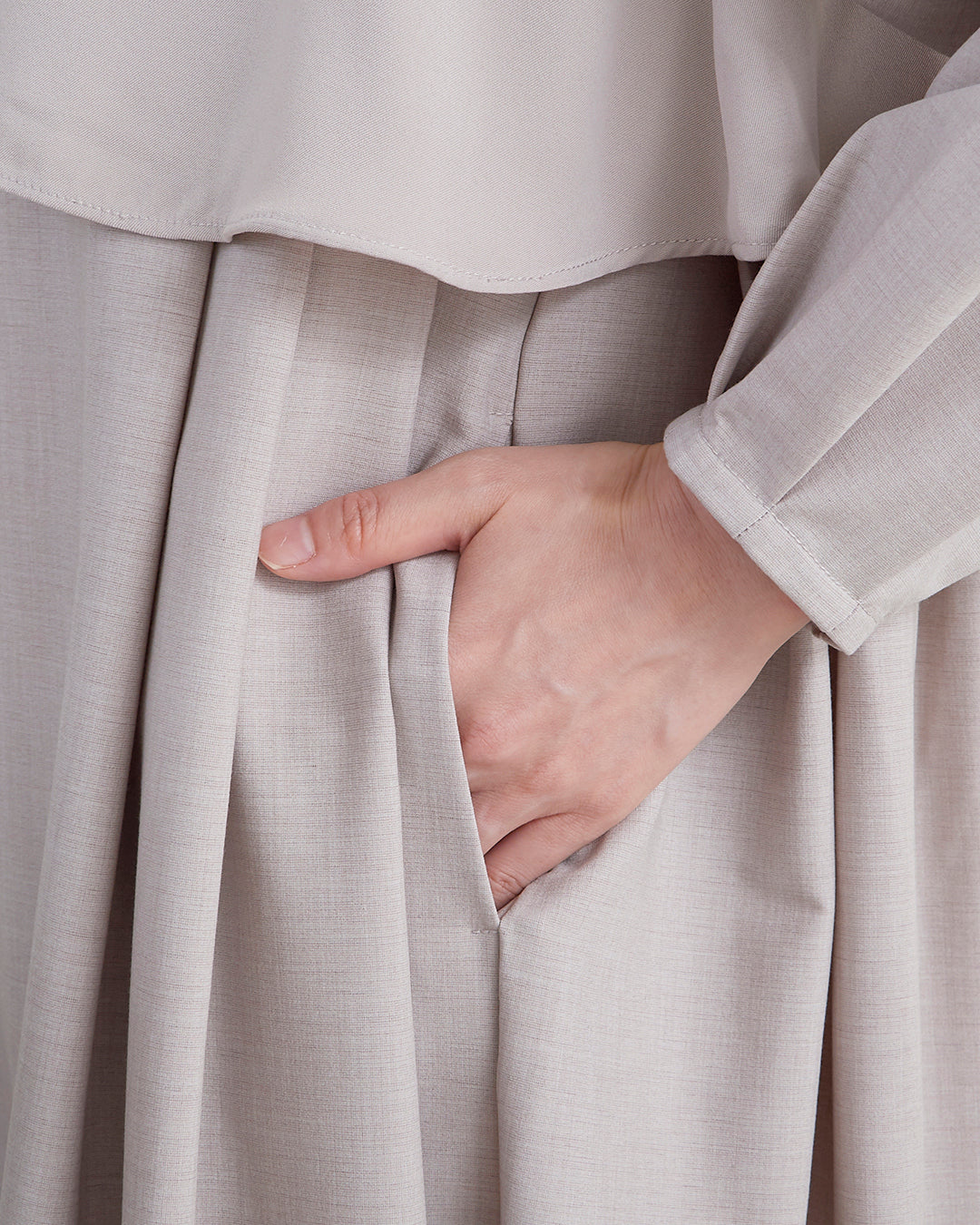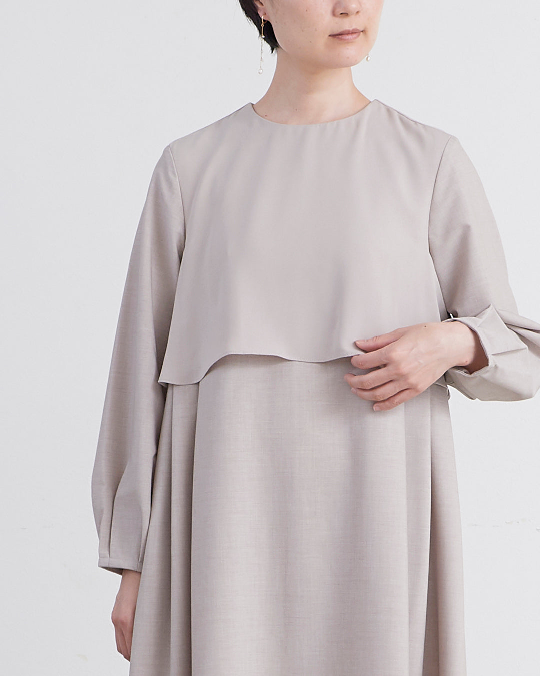 ■ サラッとした滑らかな肌触りのポリエステル×レーヨン混紡素材 ■ 前後の上身頃に微光沢で落ち感のある異素材を使用し、1枚でレイヤード風に見えるデザイン ■ 後ろファスナーあきで着脱が簡単 ■ スカート部分のサイドには、タックを入れてアクセントに
