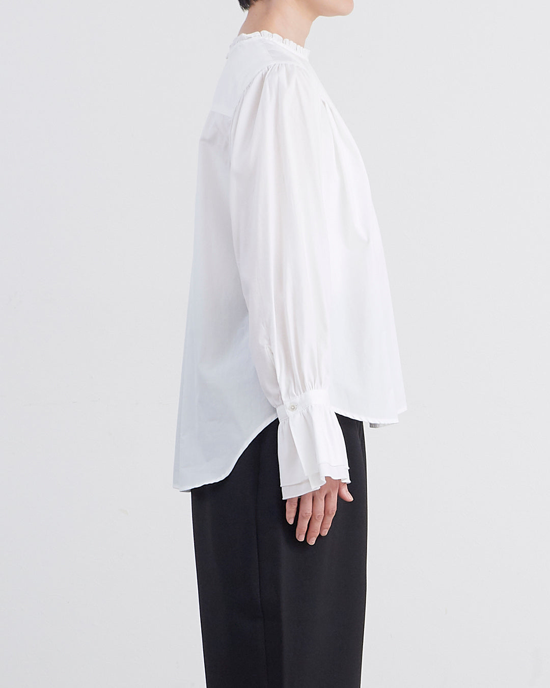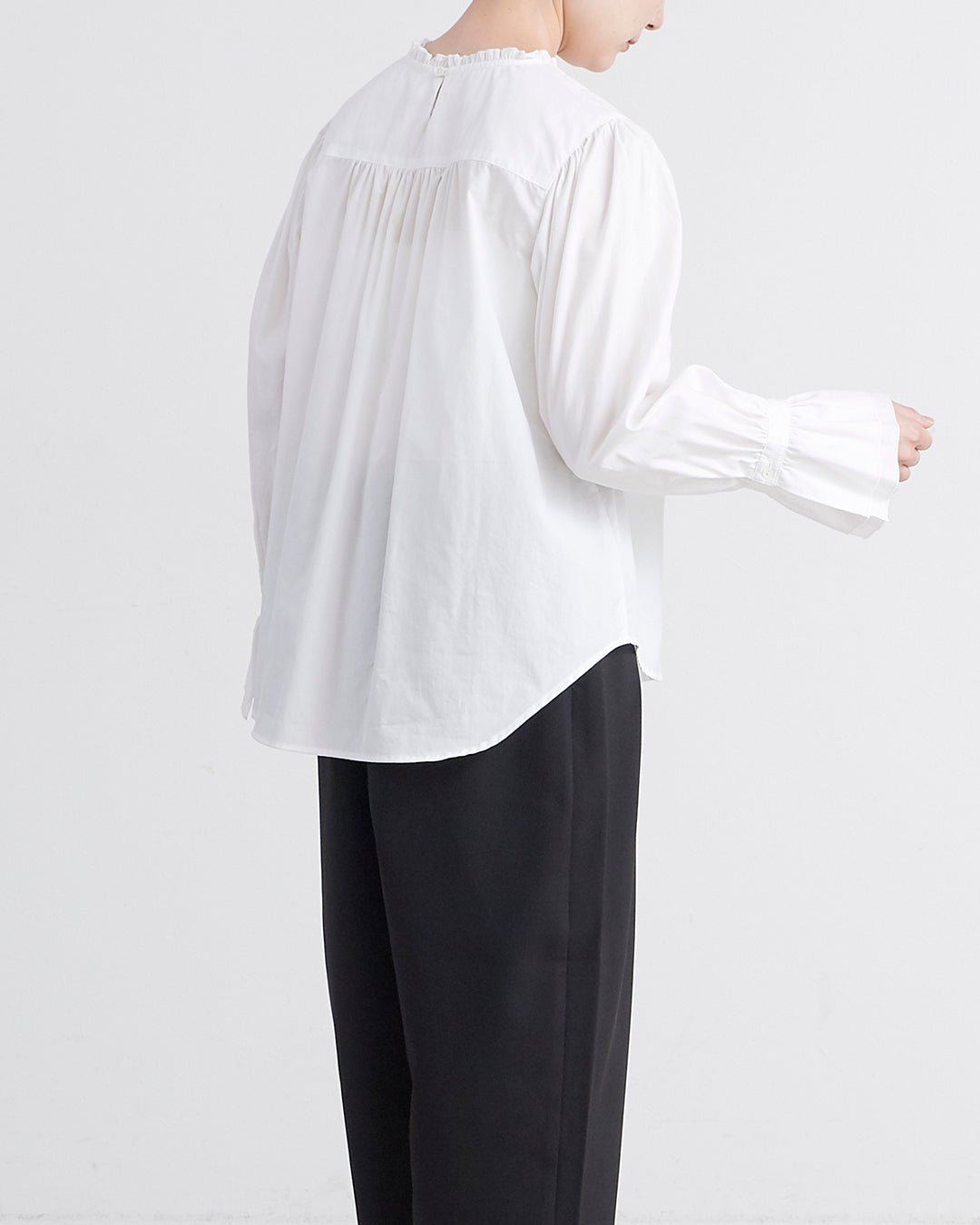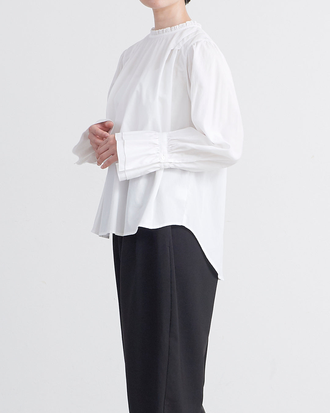 [un cinq アンサンク] #26-18 Cotton 100/2 Broad Frill Pullover コットン 100/2 ブロード スタンドネック プルオーバー - U26-18 -