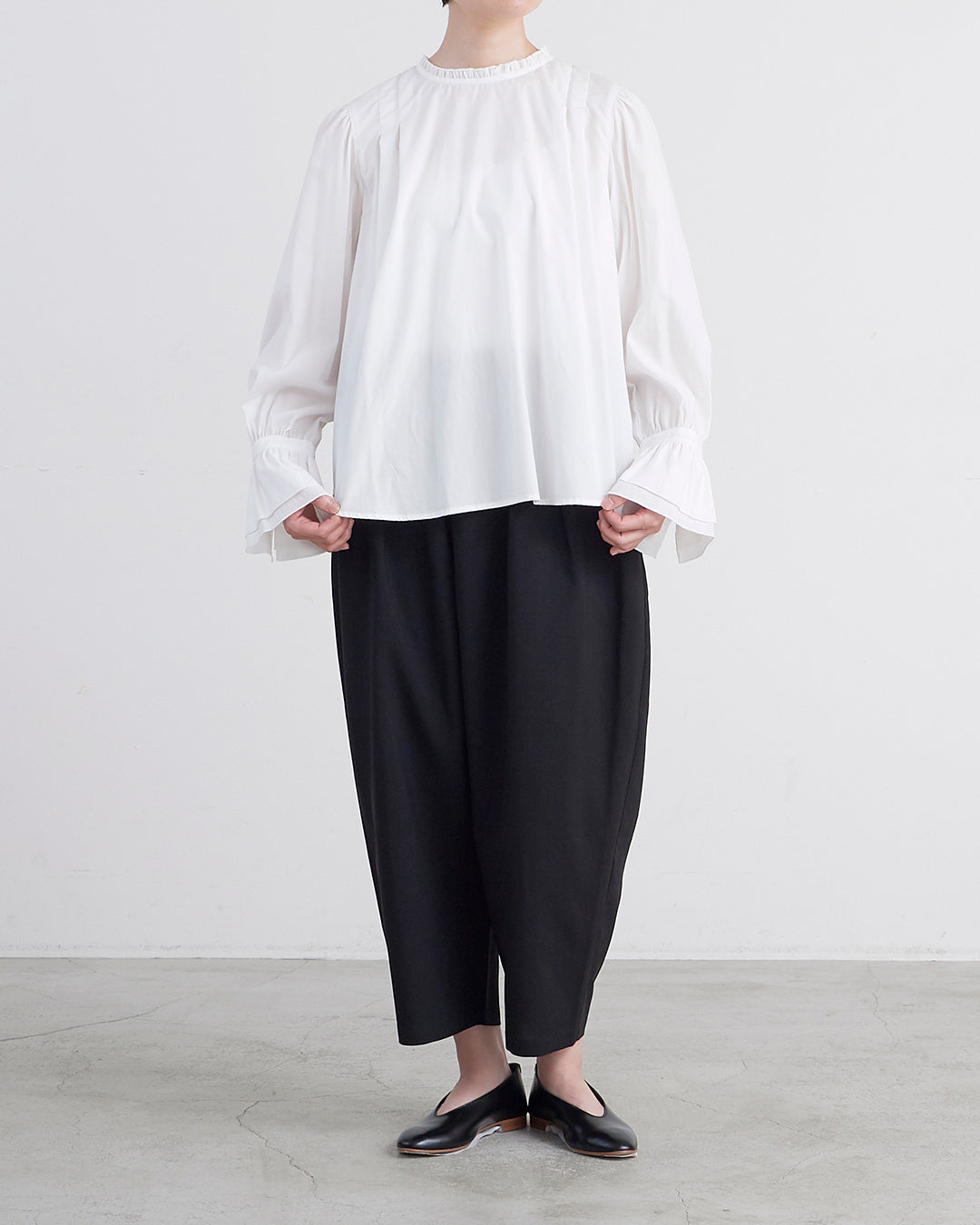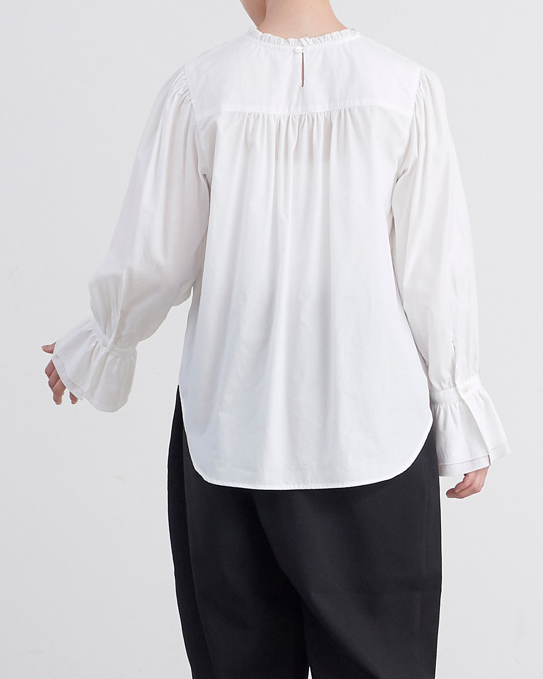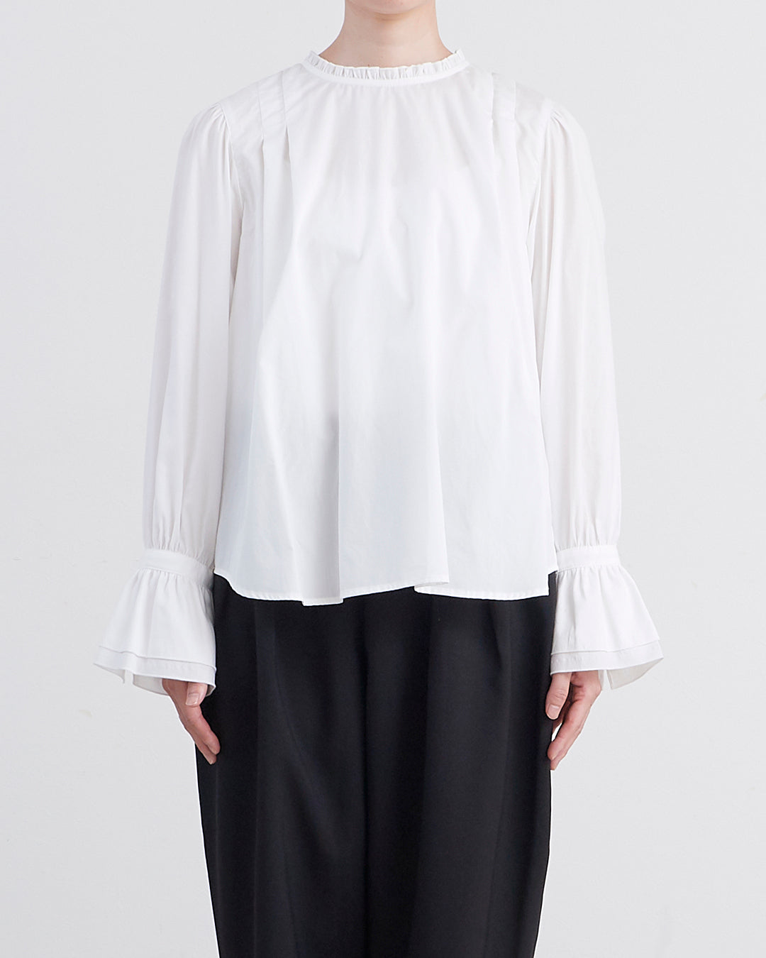 [un cinq アンサンク] #26-18 Cotton 100/2 Broad Frill Pullover コットン 100/2 ブロード スタンドネック プルオーバー - U26-18 -