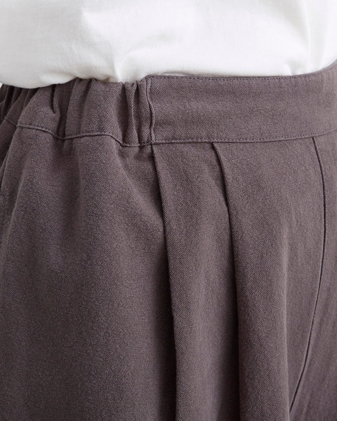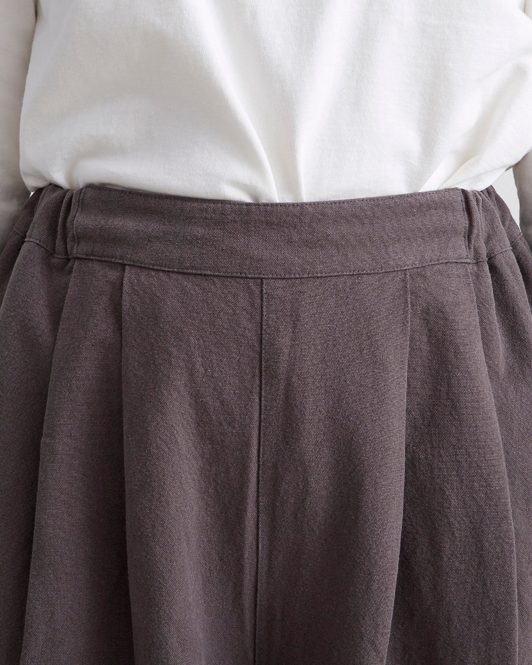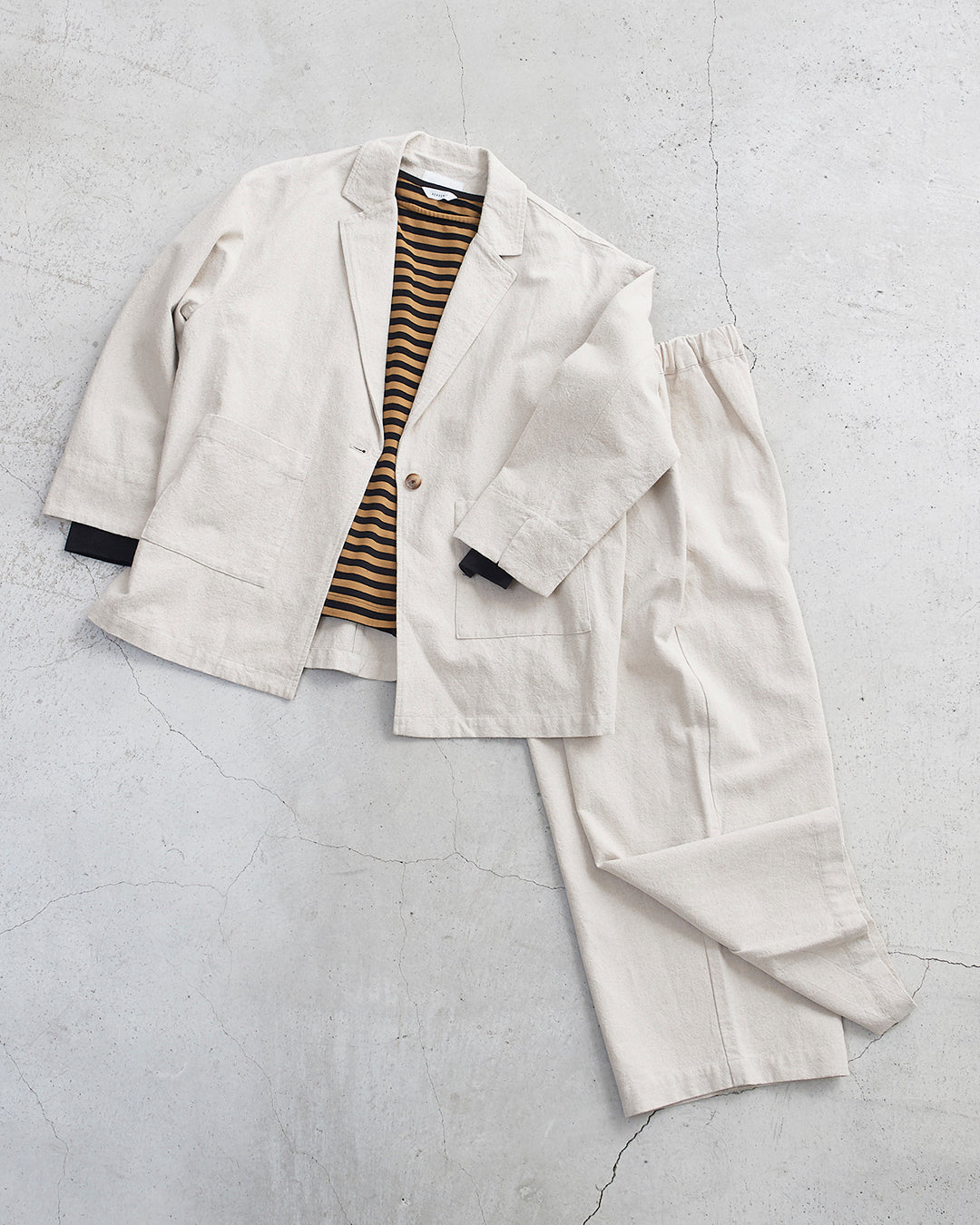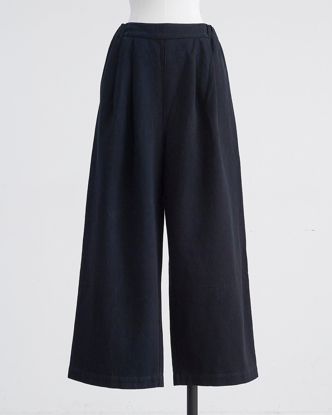 程よく厚みのある綿麻キャンバス地を使用した、ストレートシルエットのワイドパンツです 。リネン混の柔らかな風合いで穿き心地も抜群 。ウエストにはタックを施し、後ろはゴム仕様にすることで、トップスをインしたスタイルも綺麗に見せてくれます 。デイリーに使いやすい頼れる一本です。
