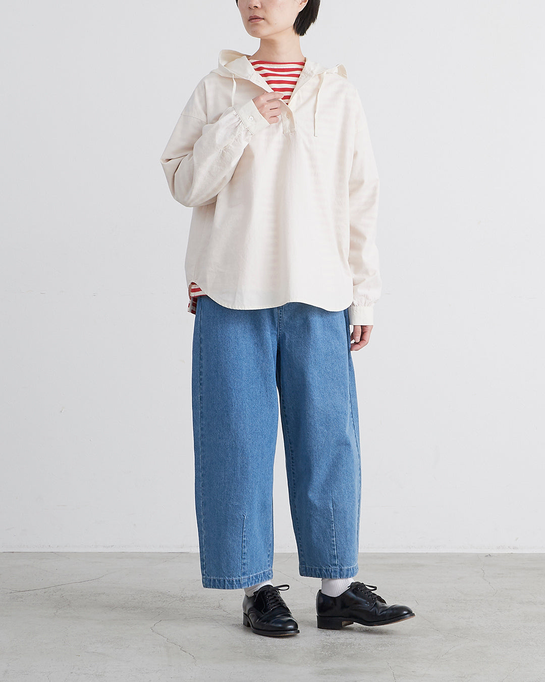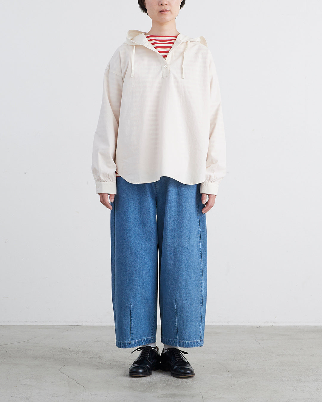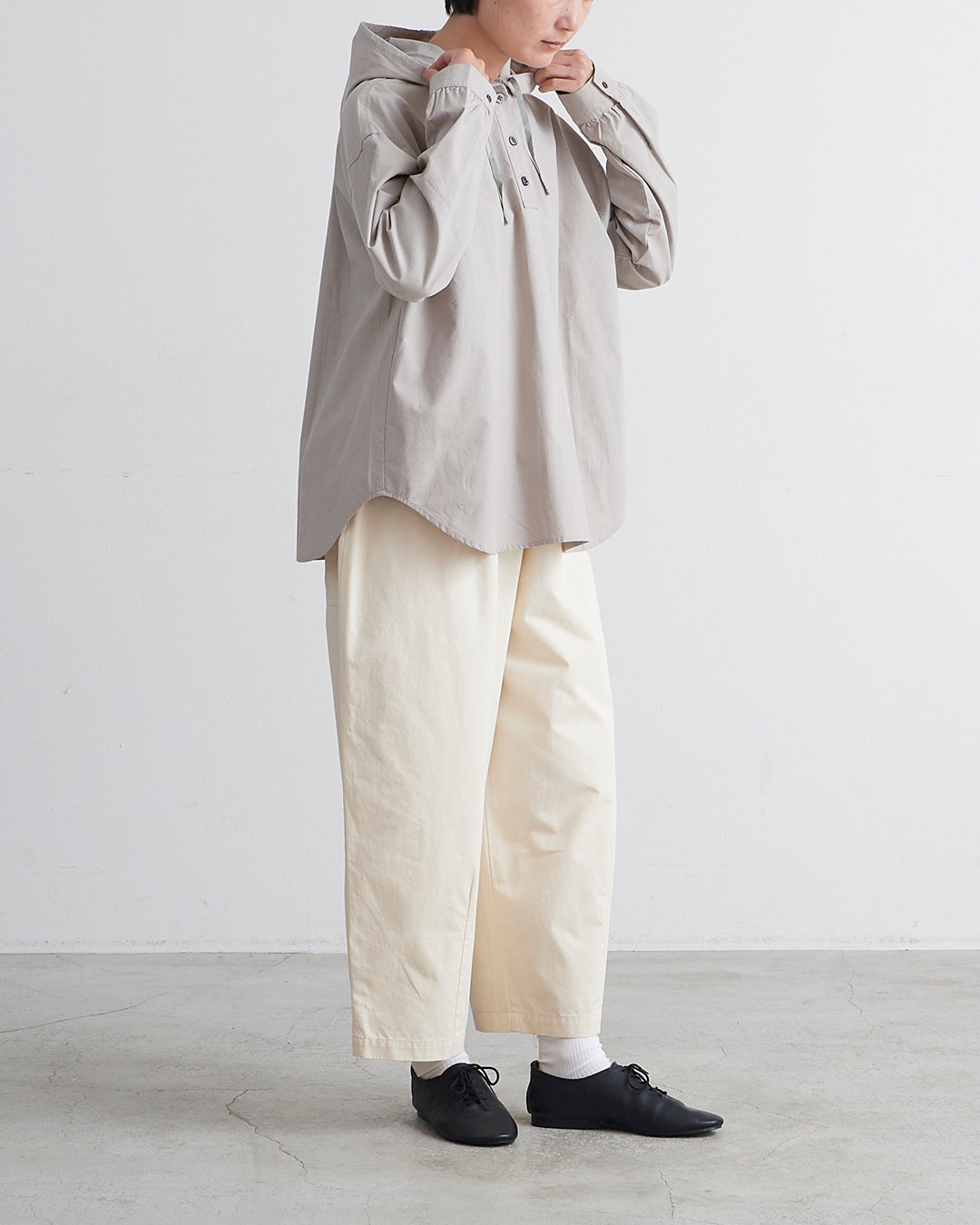 □素 材 綿:82% , 麻:18%□生産国 中国□サイズ 着丈:67㎝ , 肩幅:56㎝ , 袖丈:50㎝ , 身幅:60㎝ , アームホール:21㎝ , 裾幅:62㎝