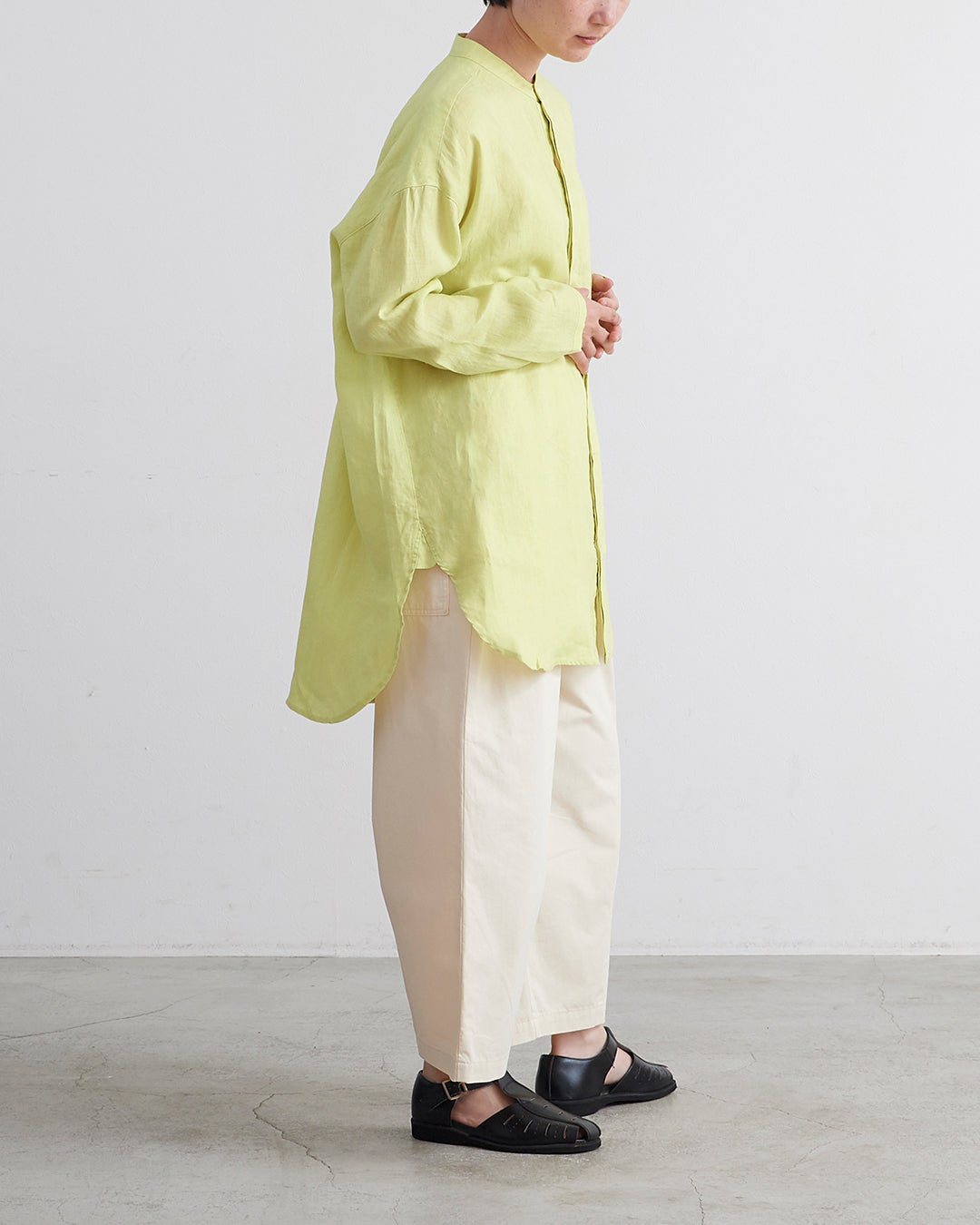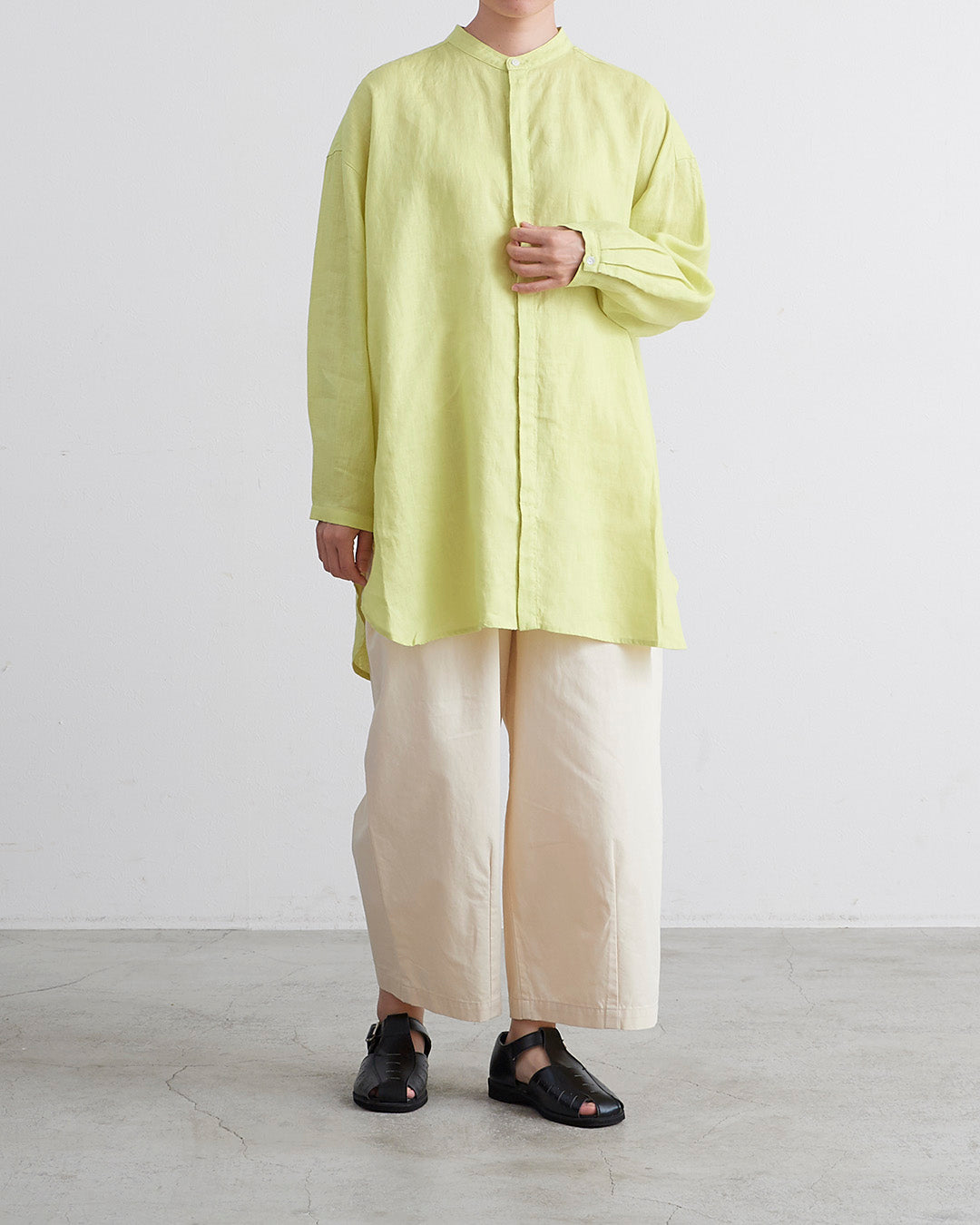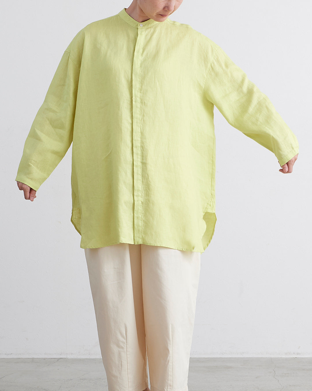 □素 材 麻:100%□生産国 中国□サイズ 着丈:81/84㎝ , 肩幅:58㎝ , 袖丈:46㎝ , 身幅:66㎝ , アームホール:21㎝ , 裾幅:68㎝