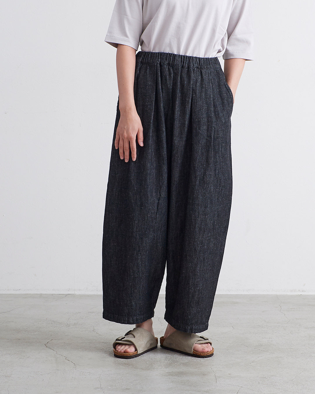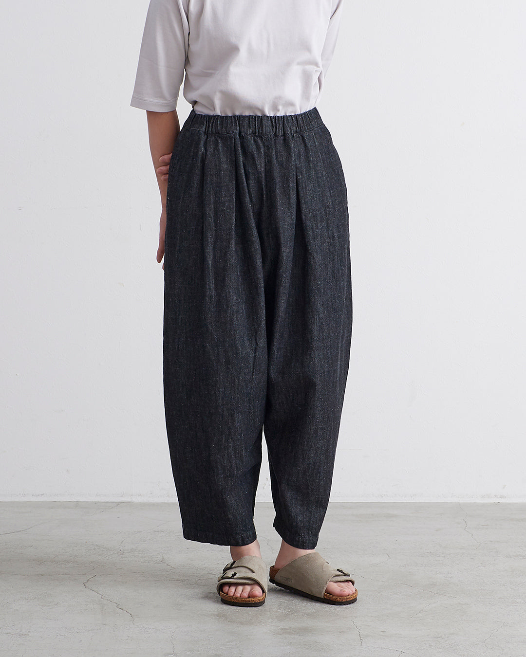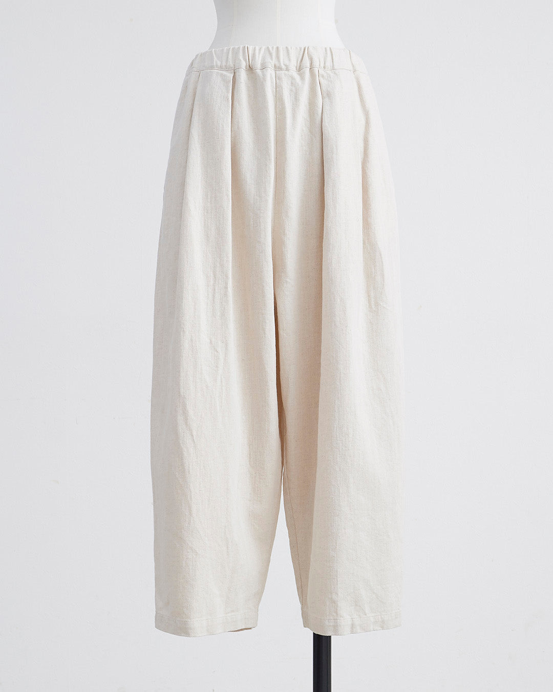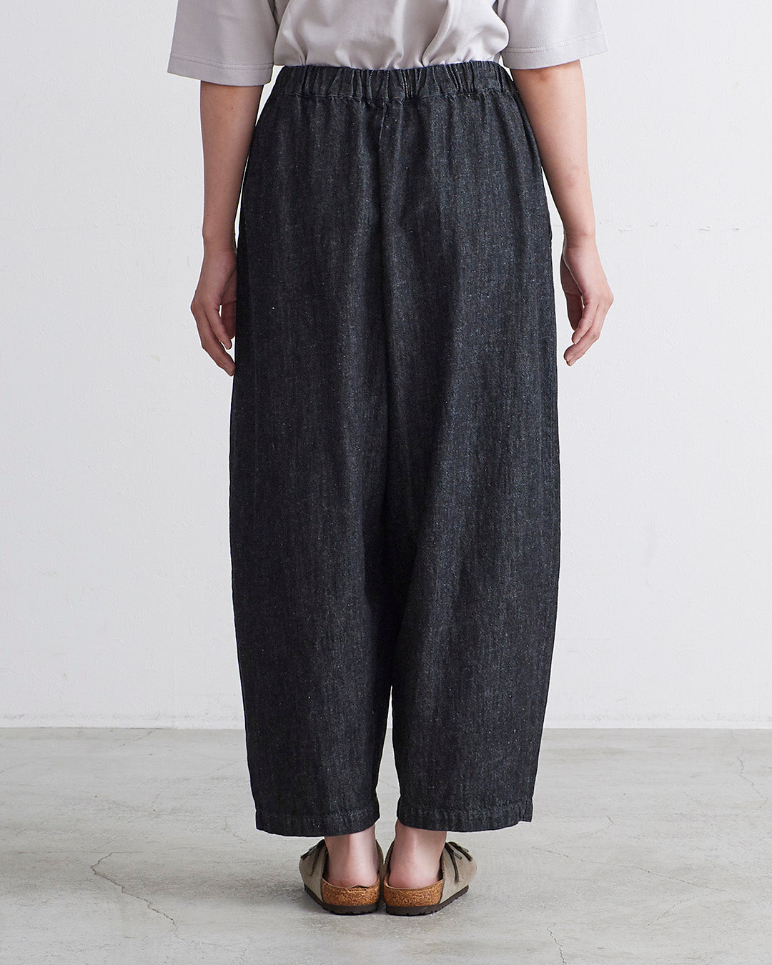 □素 材 綿:80% , 麻:20%□生産国 中国□サイズ ウエスト:34~52㎝ , ヒップ:65㎝ , 総丈:92㎝ , 股上:40/46㎝ , 股下:54㎝ , わたり:42㎝ , 裾幅:25㎝