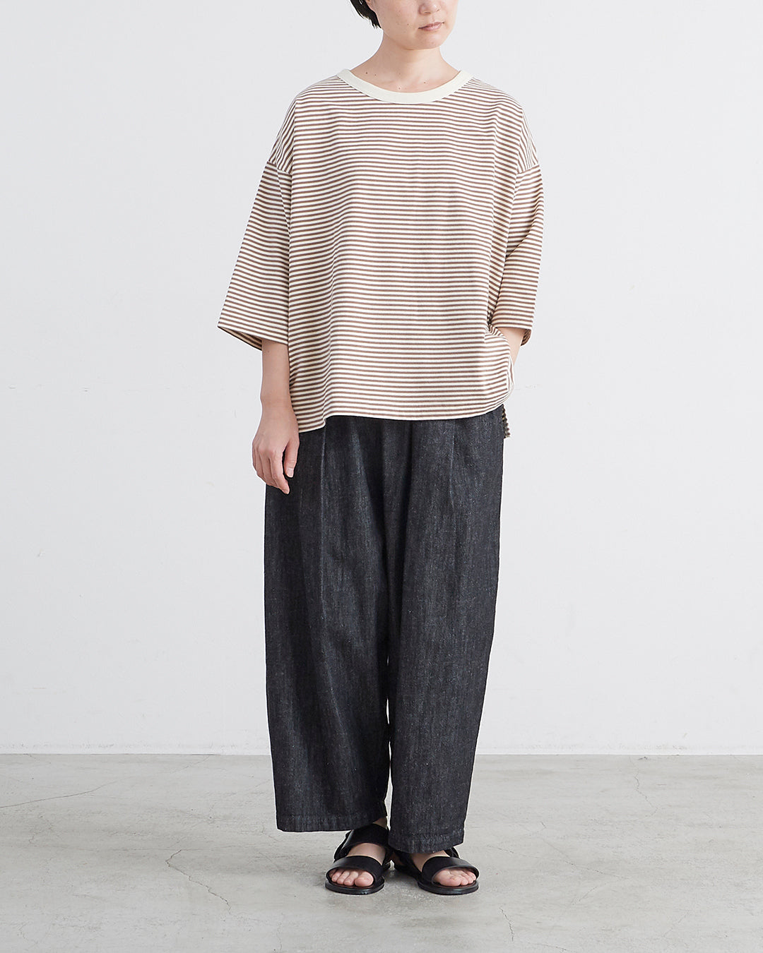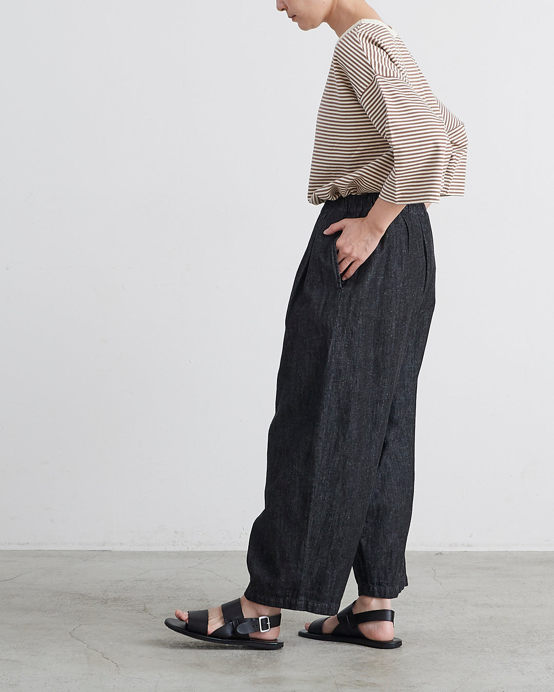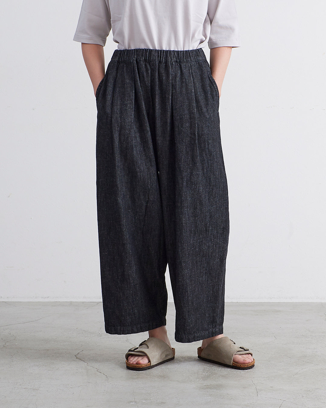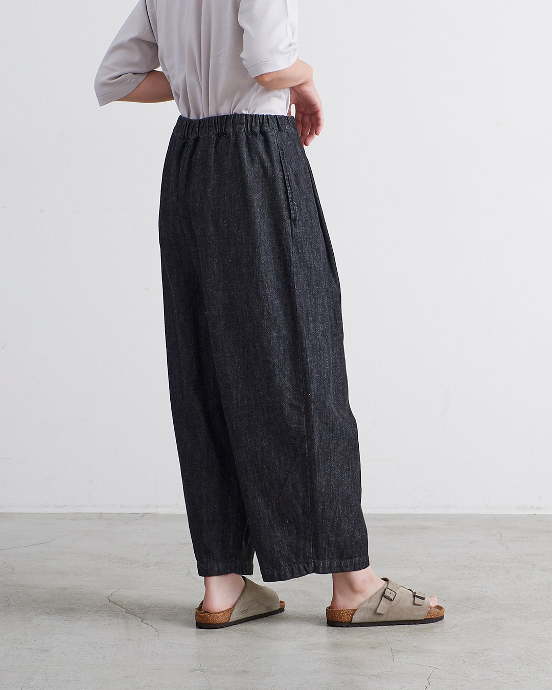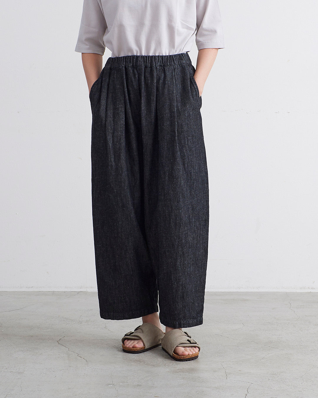 □素 材 綿:80% , 麻:20%□生産国 中国□サイズ ウエスト:34~52㎝ , ヒップ:65㎝ , 総丈:92㎝ , 股上:40/46㎝ , 股下:54㎝ , わたり:42㎝ , 裾幅:25㎝