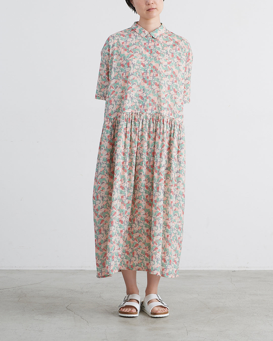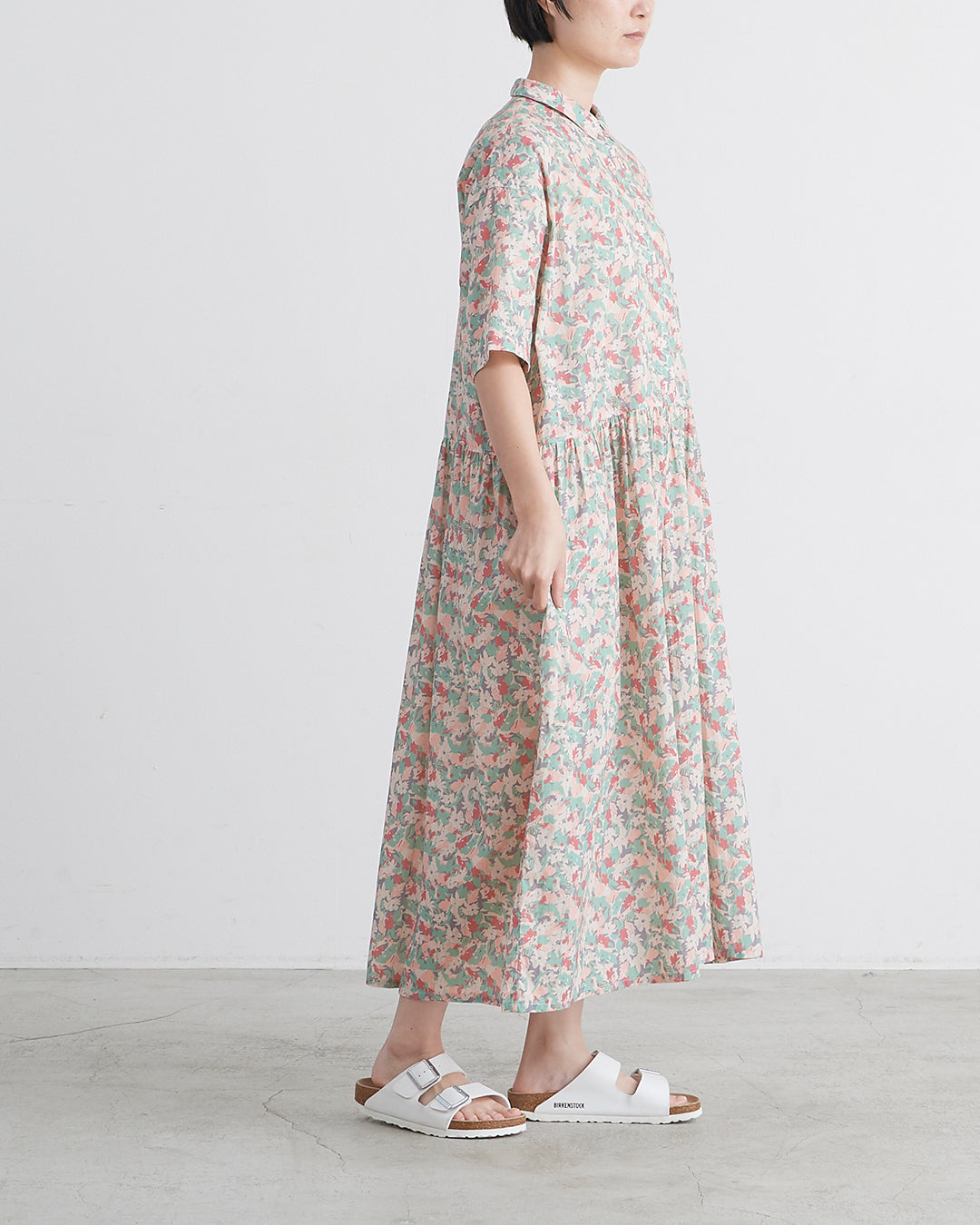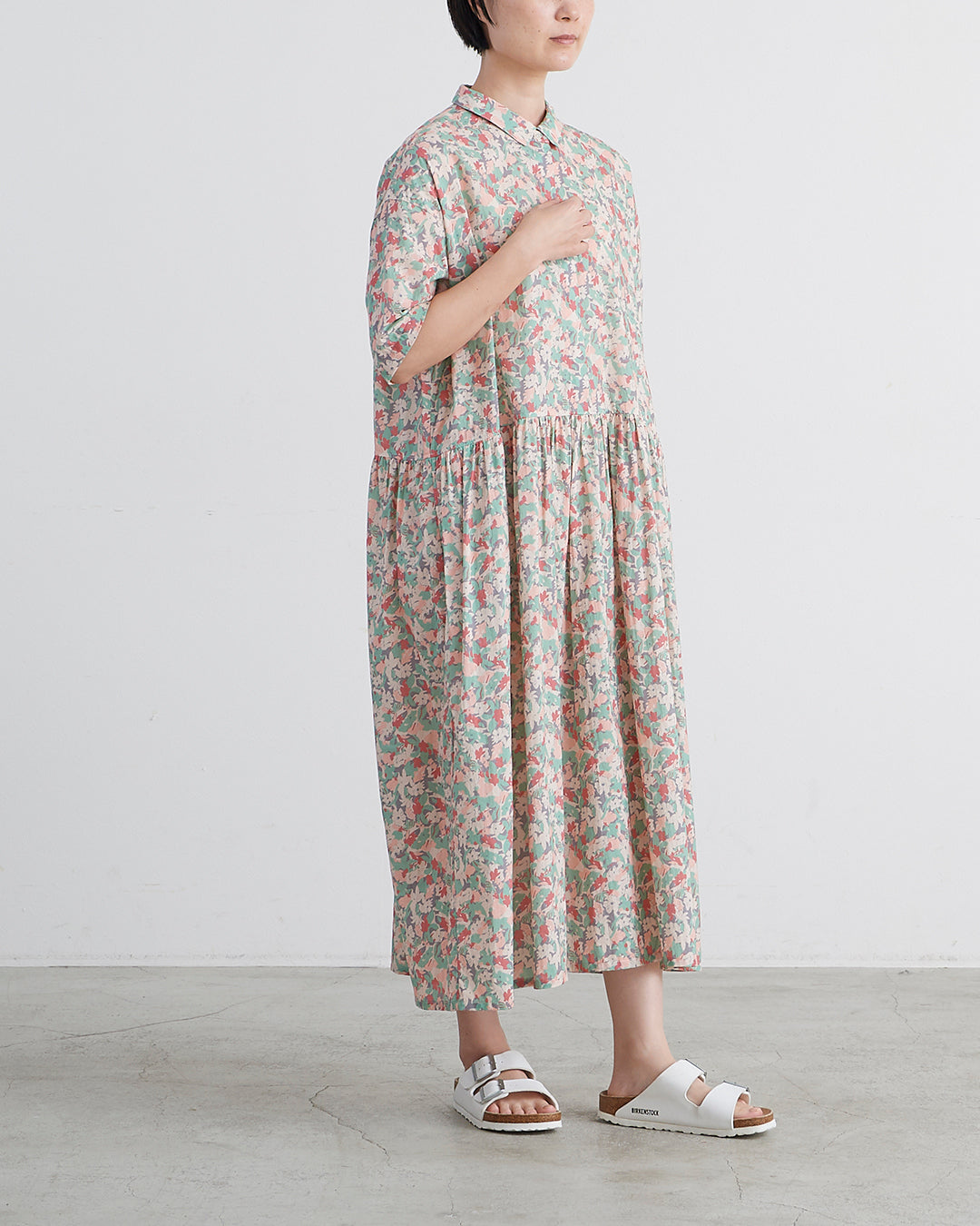 □素 材 綿:100%□生産国 中国□サイズ 着丈:120㎝ , 肩幅:54㎝ , 袖丈:23㎝ , 身幅:63㎝ , アームホール:21㎝ , 裾幅:110㎝