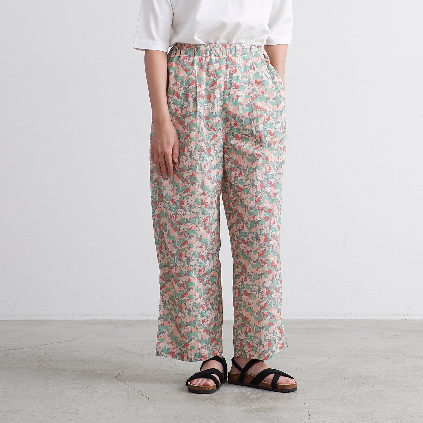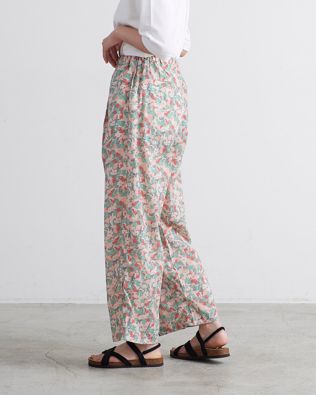 □素 材 綿:100%□生産国 中国□サイズ ウエスト:34~50㎝ , ヒップ:57㎝ , 総丈:95㎝ , 股上:35/43㎝ , 股下:60㎝ , わたり:34㎝ , 裾幅:25㎝