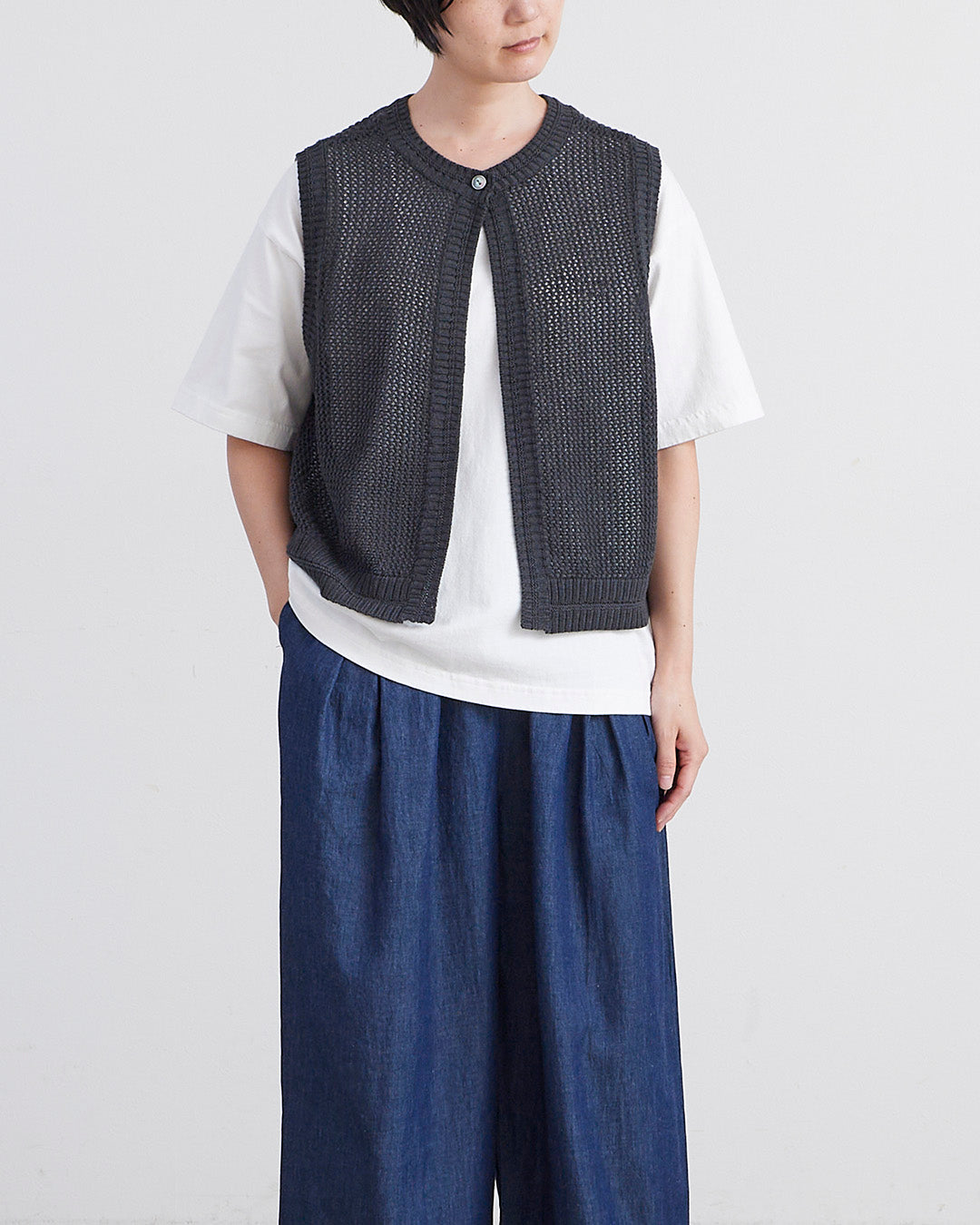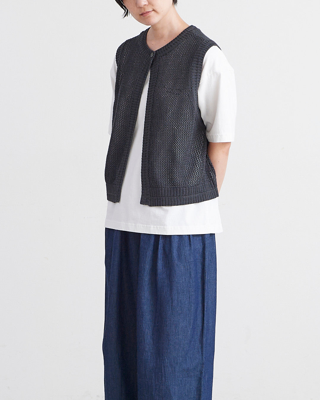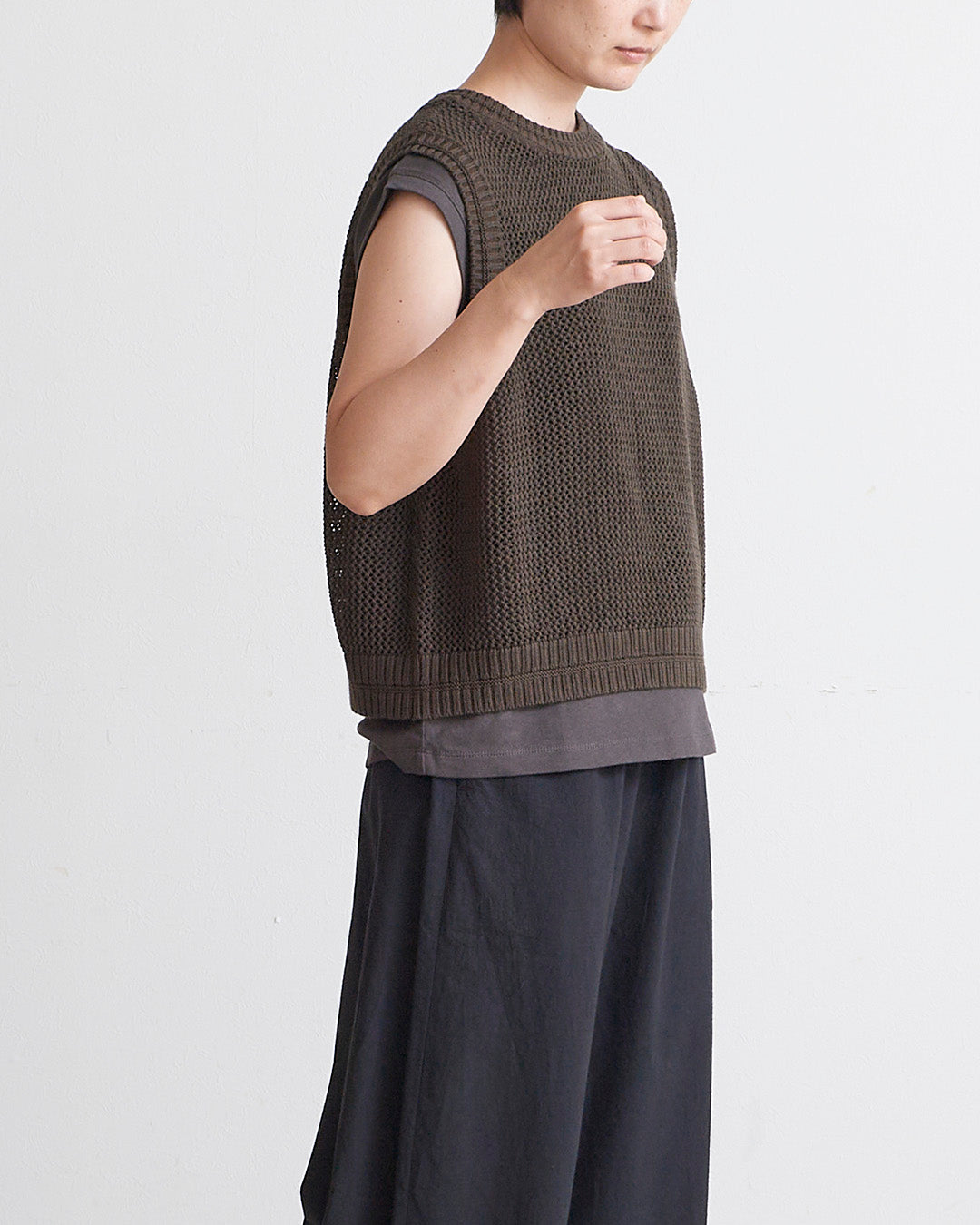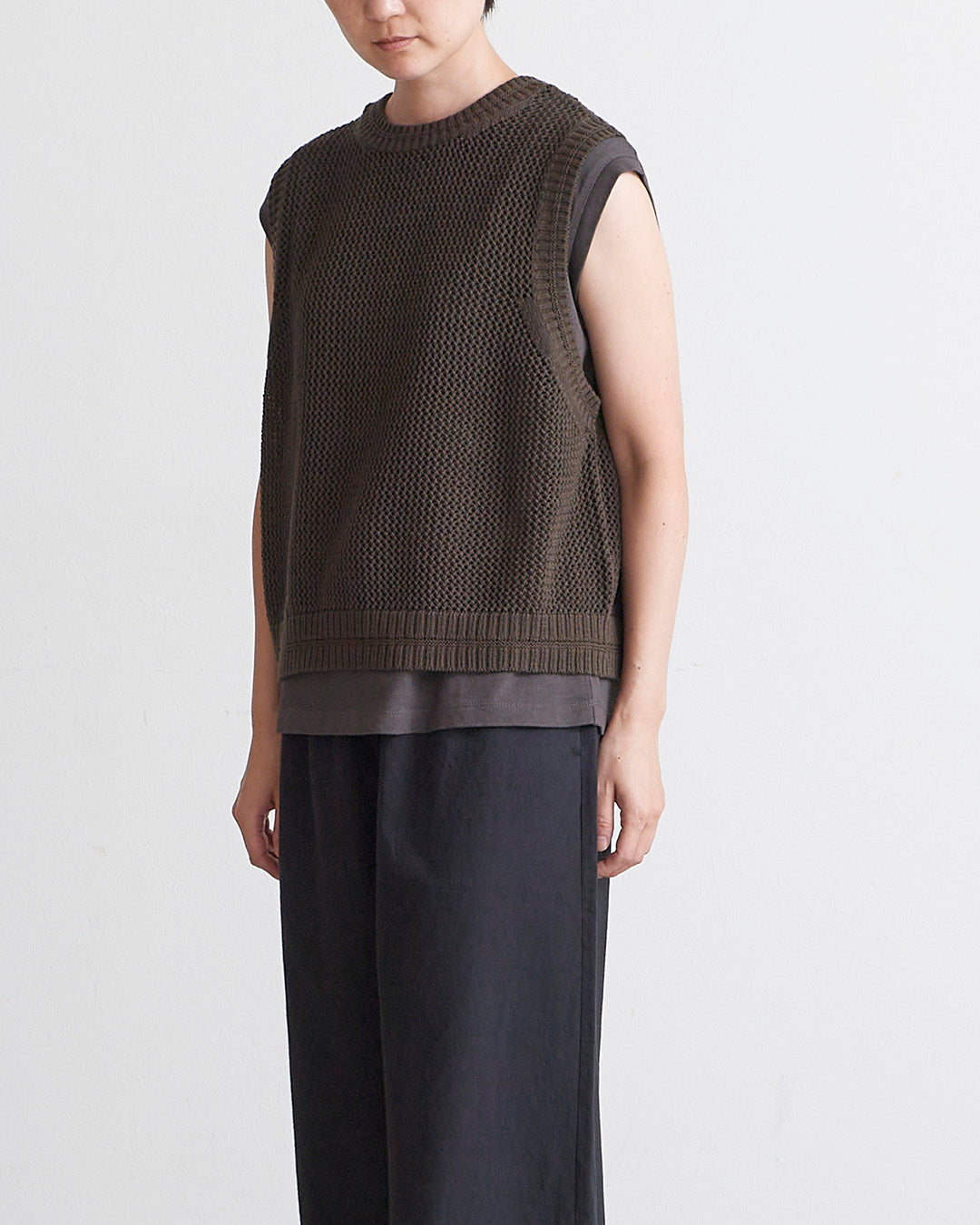 □素 材 綿:72% , 麻:28%□生産国 中国□サイズ 着丈:50㎝ , 肩幅:31㎝ , 身幅:55㎝ , アームホール:30㎝ , 裾幅:52㎝□モデル身長 163㎝